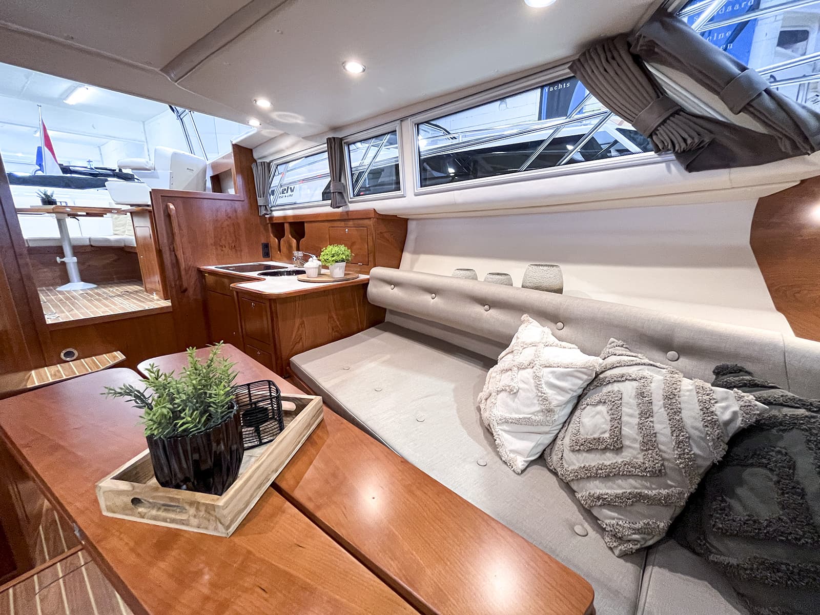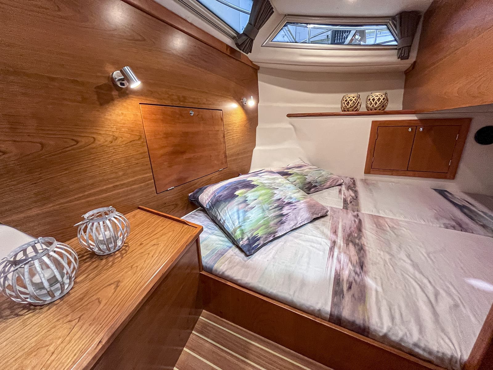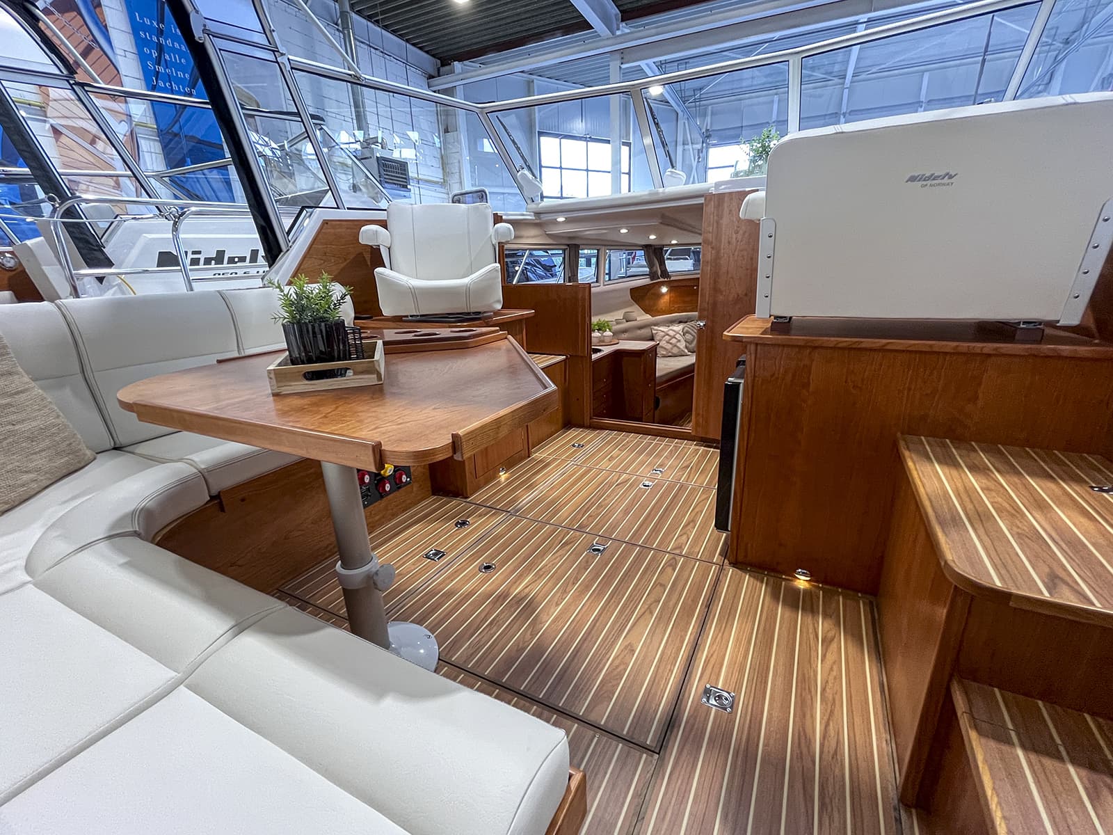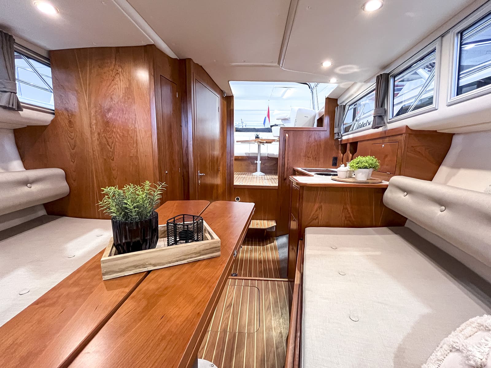 The Nidelv S-line AC is a motor yacht that will take your boating to the next level. Whether you are taking your time or hitting the water at 14 knots, every journey is a pleasure. This yacht is designed with the perfect balance between comfort and functionality, based on a proven concept. The aft cabin not only offers extra space, but also enhances the feeling of freedom you are looking for on the water. There is an abundance of living space and clever storage, making this yacht the ideal choice for the adventurous water sports enthusiast who wants to explore larger waters. And you? Where will your next destination be?