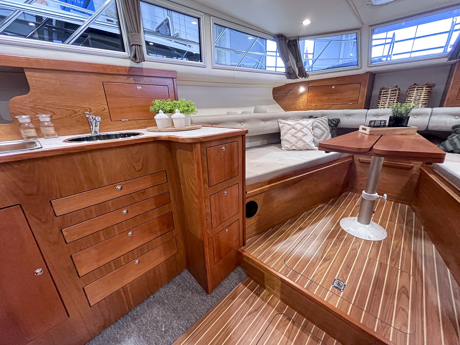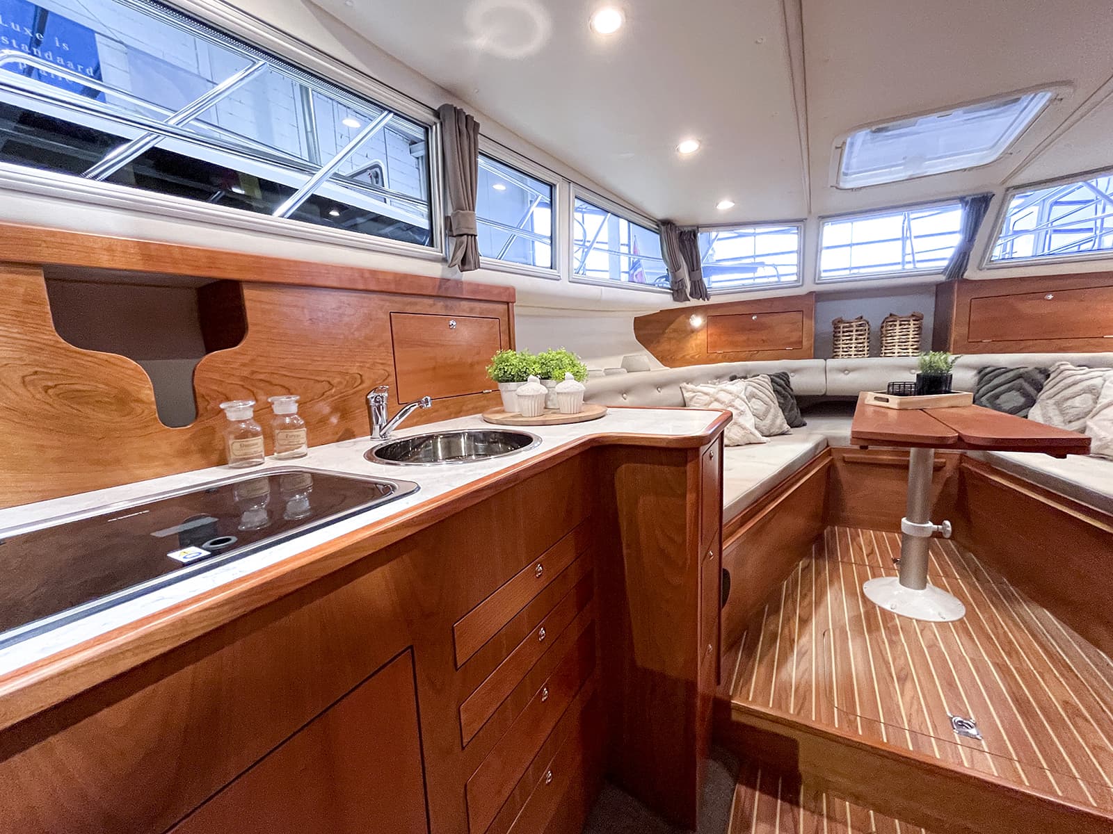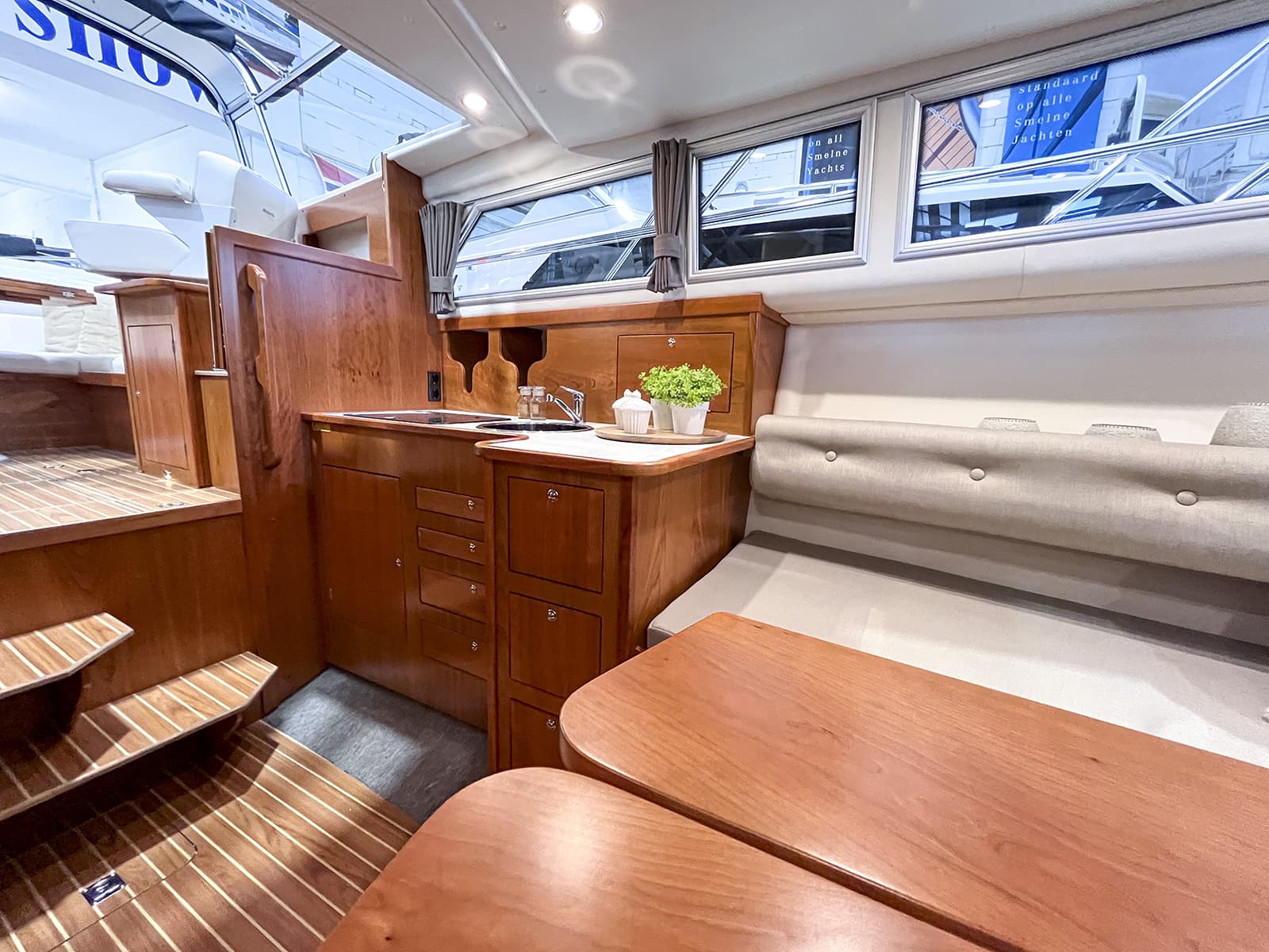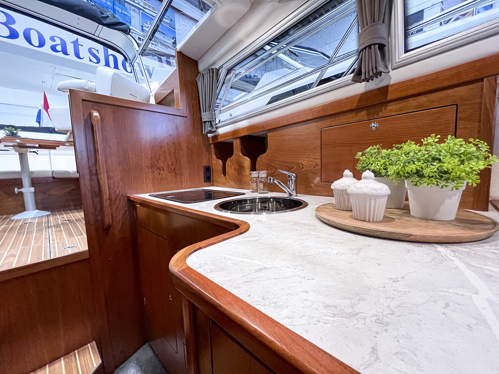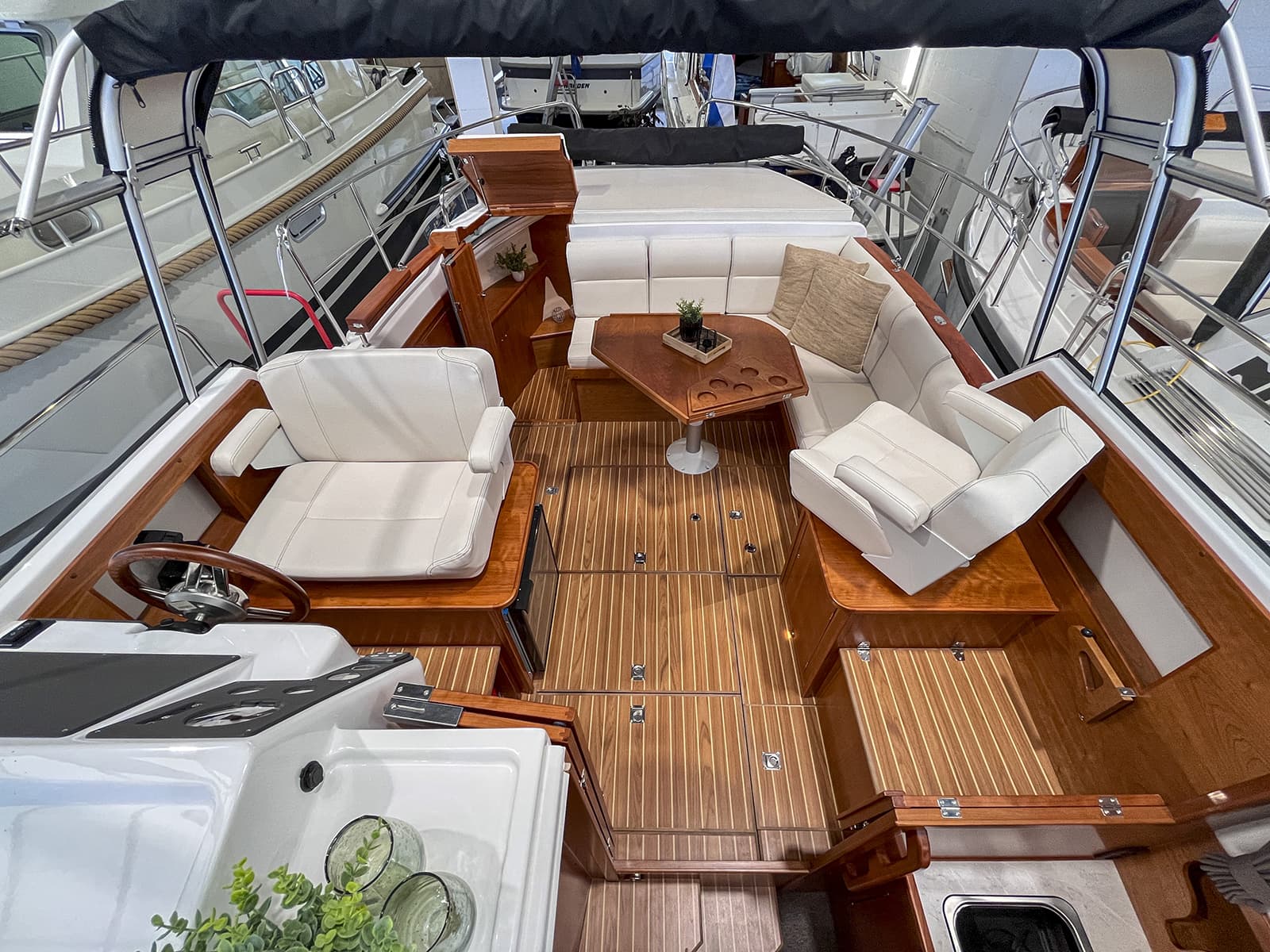 The Nidelv S-line AC is a motor yacht that will take your boating to the next level. Whether you are taking your time or hitting the water at 14 knots, every journey is a pleasure. This yacht is designed with the perfect balance between comfort and functionality, based on a proven concept. The aft cabin not only offers extra space, but also enhances the feeling of freedom you are looking for on the water. There is an abundance of living space and clever storage, making this yacht the ideal choice for the adventurous water sports enthusiast who wants to explore larger waters. And you? Where will your next destination be?