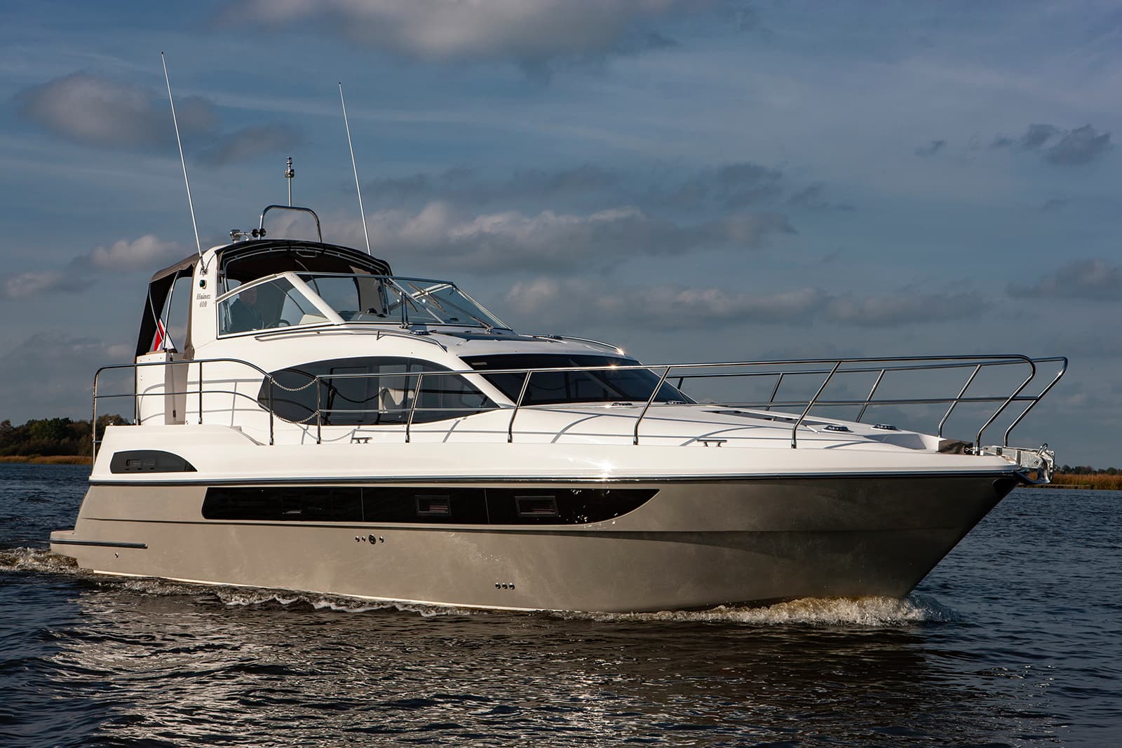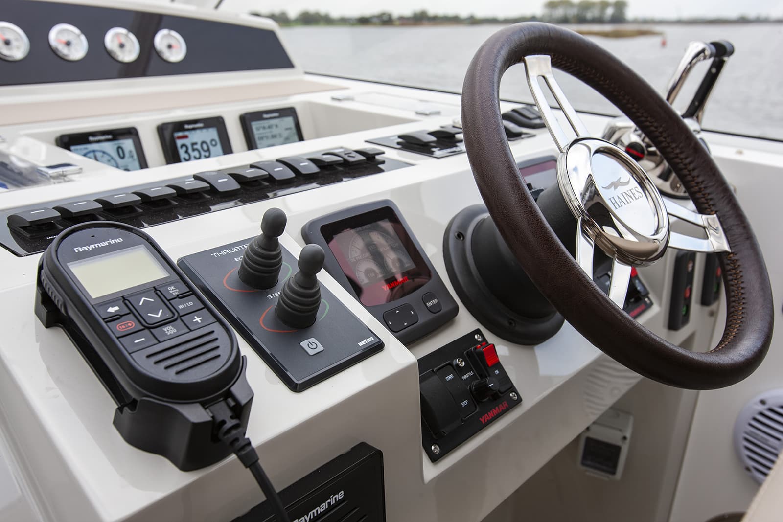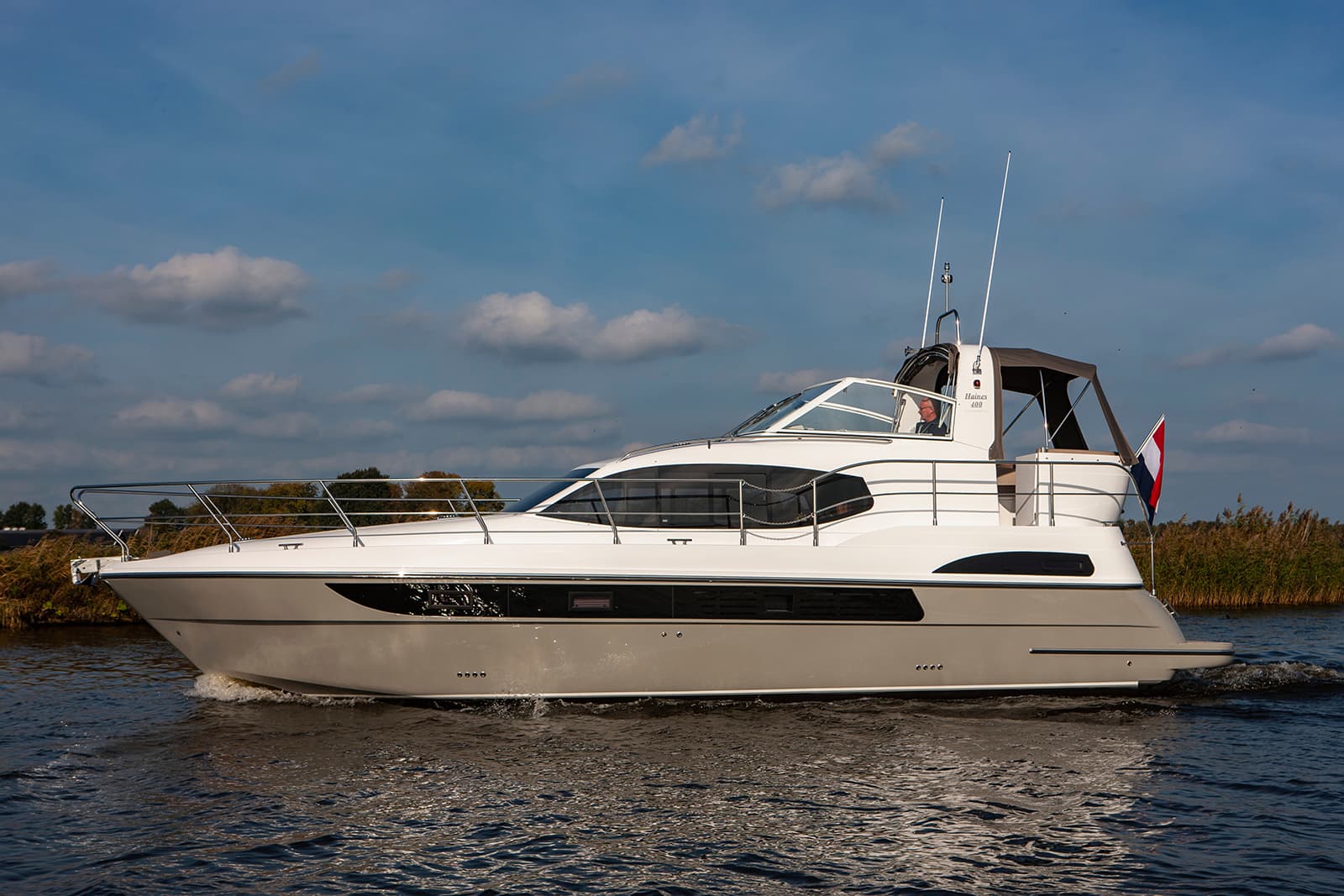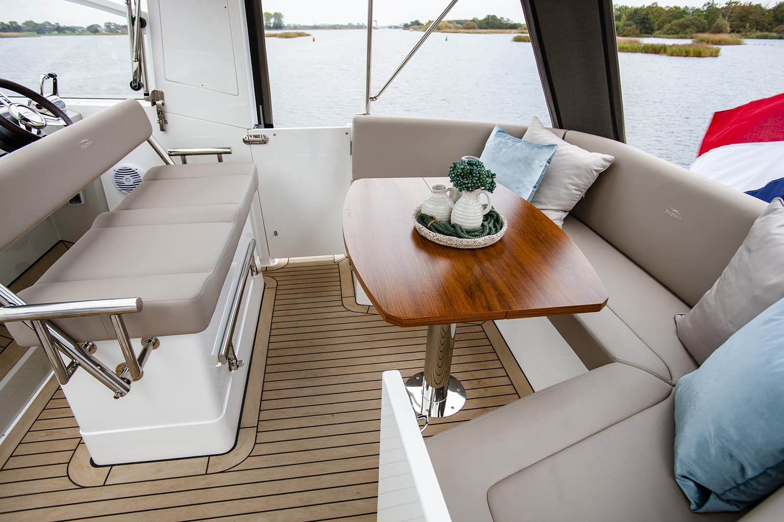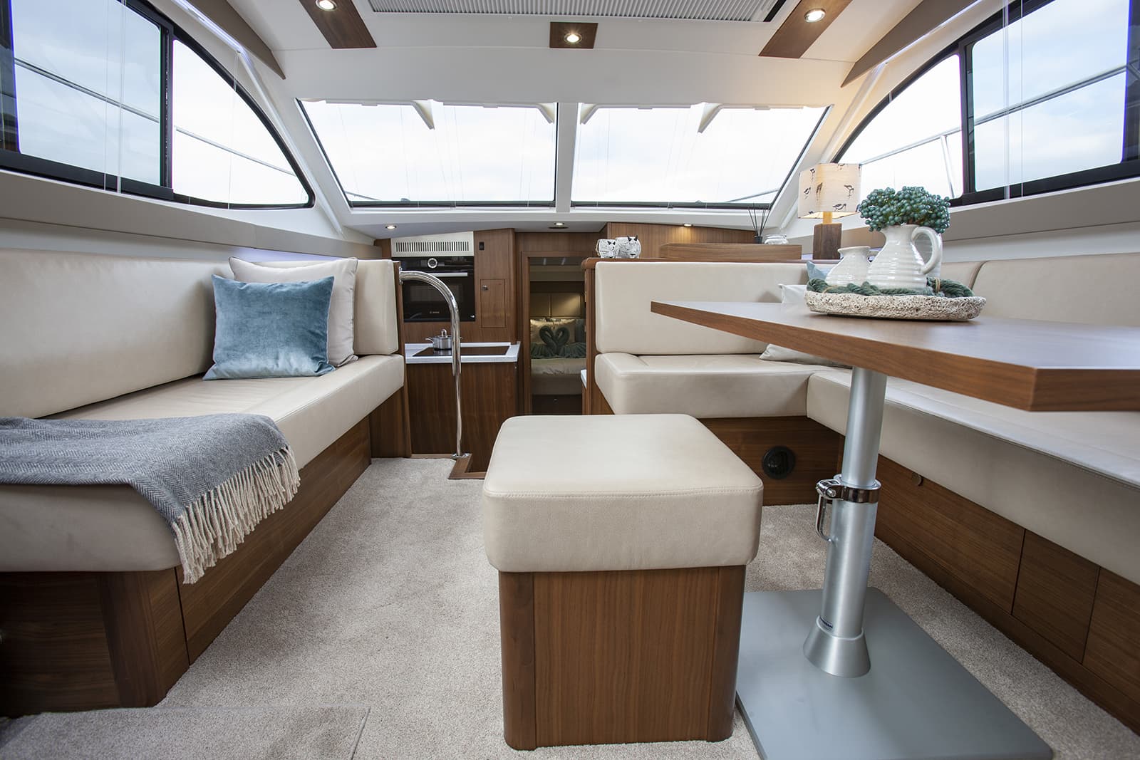 On the aft deck, you’ll find a spacious U-shaped settee, the perfect place to relax and enjoy the panoramic views. The light and airy saloon offers an open and comfortable feel, while the generous, split-level galley provides a practical layout for maximum convenience. Both forward and aft are equipped with spacious cabins, each with its own bathroom, so you and your guests can stay in ultimate comfort. Looking for extra sleeping space? Then opt for a layout with a third cabin, equipped with a bunk bed. The Haines 400 AC is also available in an offshore version with a planing hull, making the yacht a smooth and comfortable cruiser at all speeds. Whether you choose a single or twin engine configuration, the possibilities are endless. With the freedom to fully customize the yacht to your own requirements, the Haines 400 AC offers customization at its best. What does your ideal Haines 400 AC look like?