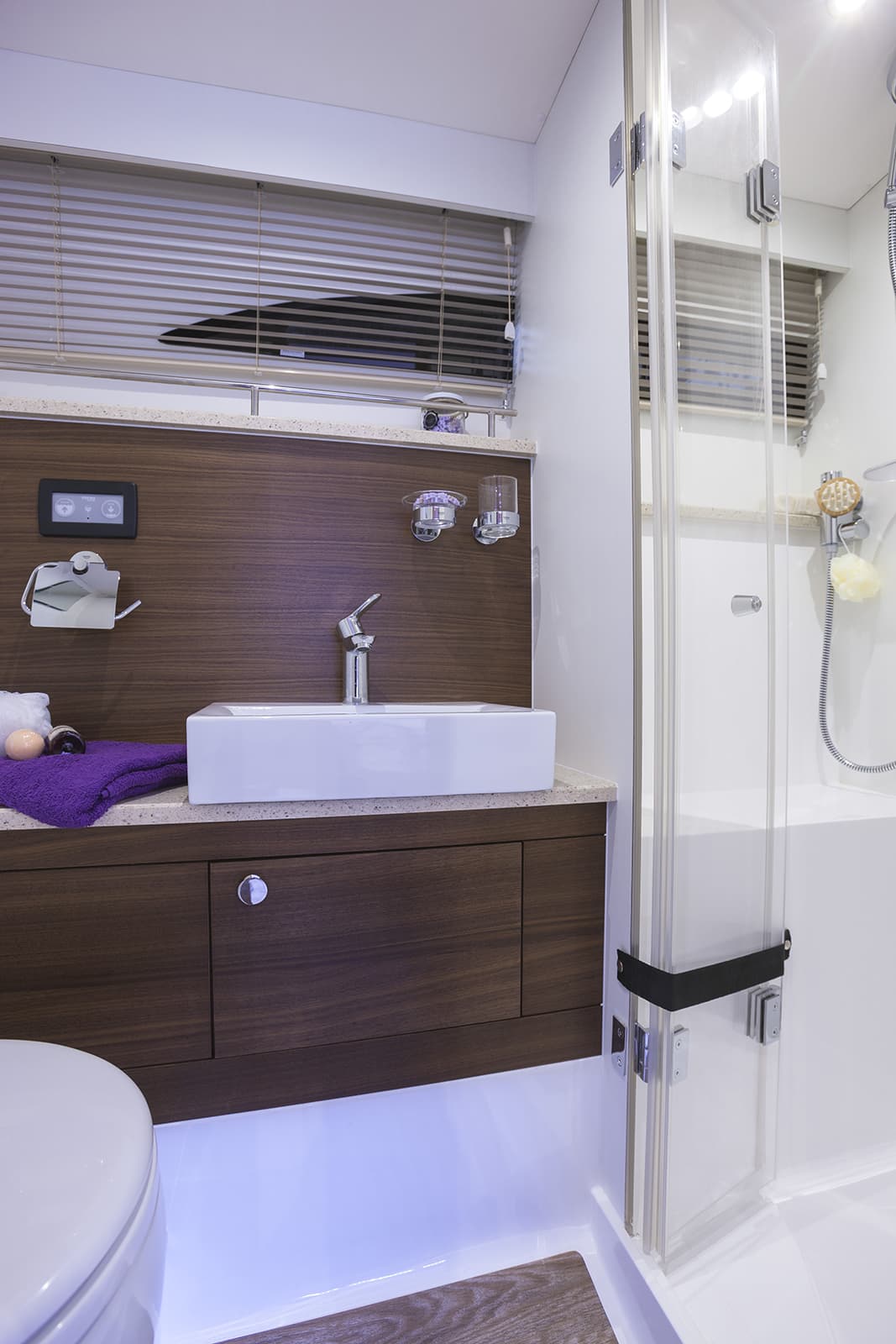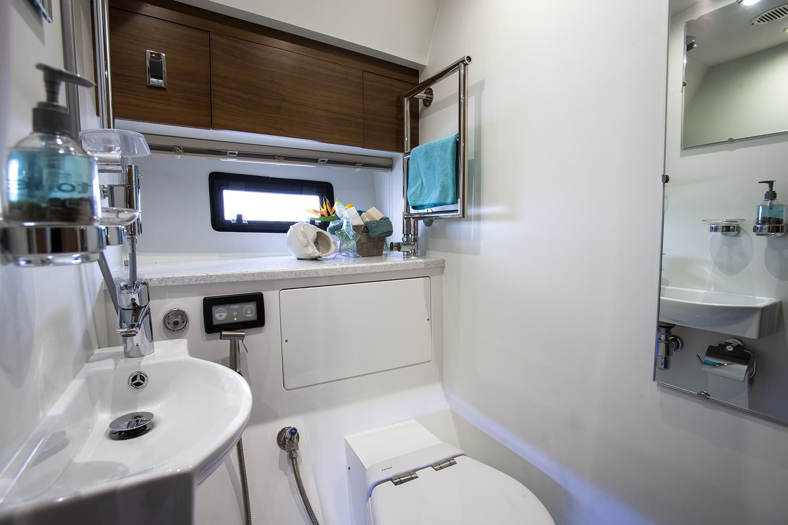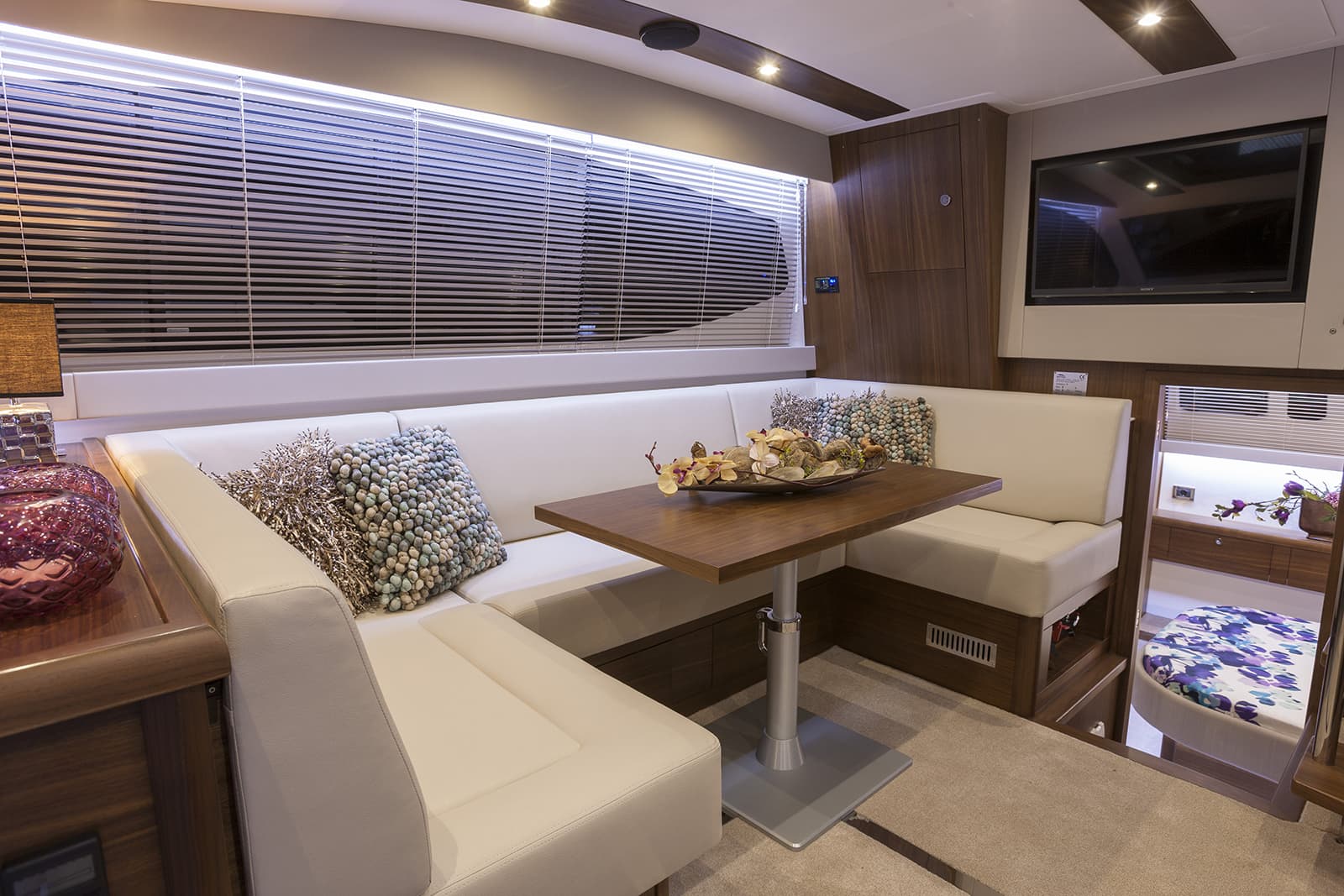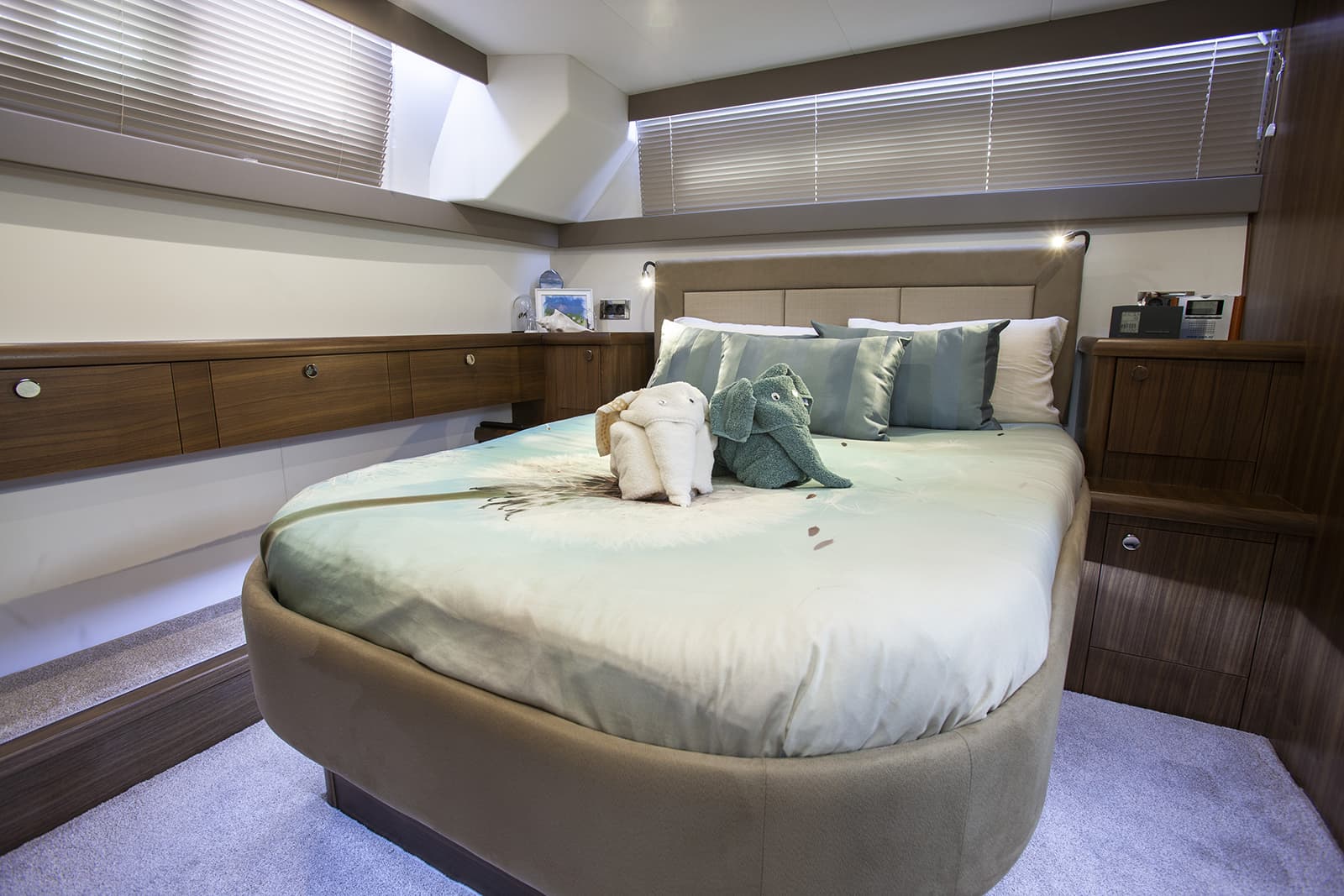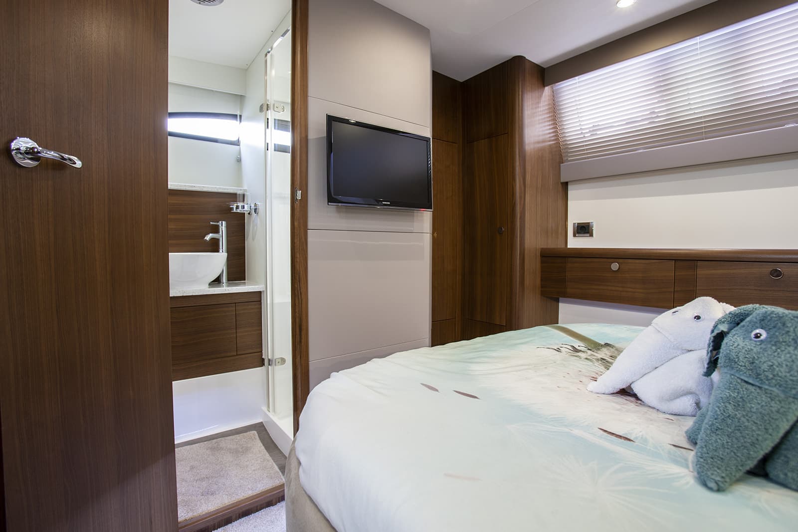 On the aft deck, you’ll find a spacious U-shaped settee, the perfect place to relax and enjoy the panoramic views. The light and airy saloon offers an open and comfortable feel, while the generous, split-level galley provides a practical layout for maximum convenience. Both forward and aft are equipped with spacious cabins, each with its own bathroom, so you and your guests can stay in ultimate comfort. Looking for extra sleeping space? Then opt for a layout with a third cabin, equipped with a bunk bed. The Haines 400 AC is also available in an offshore version with a planing hull, making the yacht a smooth and comfortable cruiser at all speeds. Whether you choose a single or twin engine configuration, the possibilities are endless. With the freedom to fully customize the yacht to your own requirements, the Haines 400 AC offers customization at its best. What does your ideal Haines 400 AC look like?