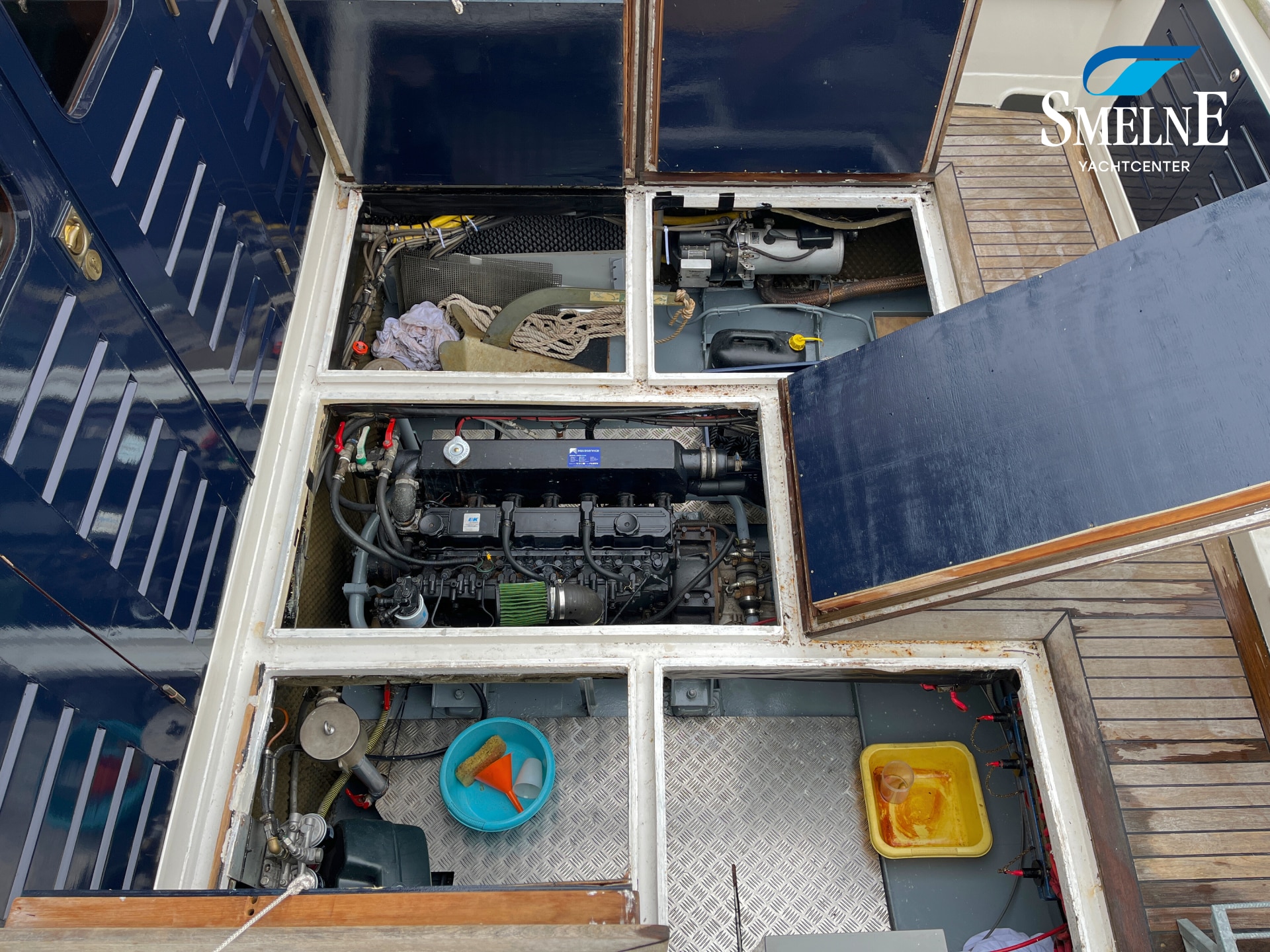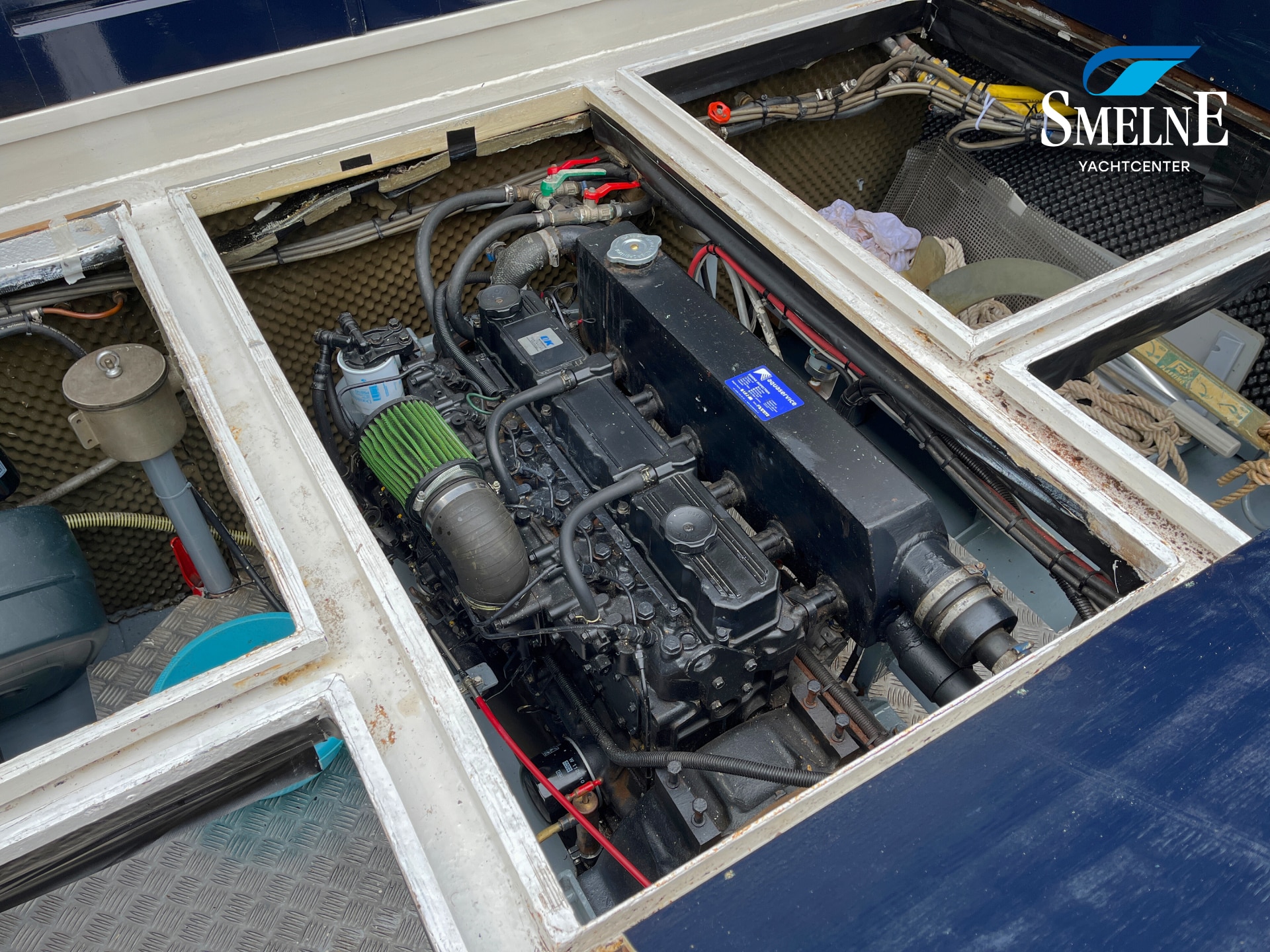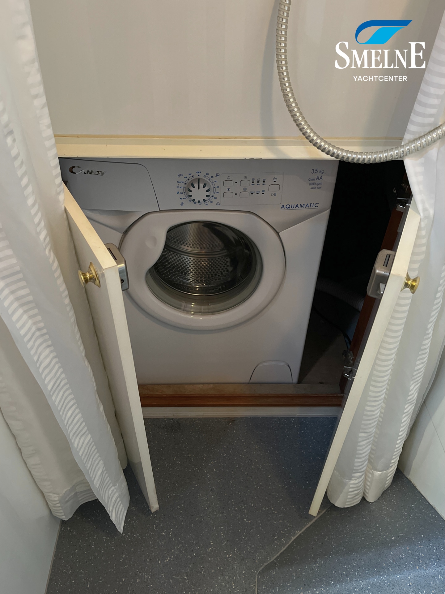 This Barkas 1100 OK is also equipped with a Candy Aquamatic washing machine (3,5 kg), a Victron BMV-602S battery monitor, an additional Webasto DBW 2010 heater for heating the boiler, fender baskets for four fenders, and a transom door with a bathing platform. The last engine service was performed in 2025, making the boat ready for immediate use.