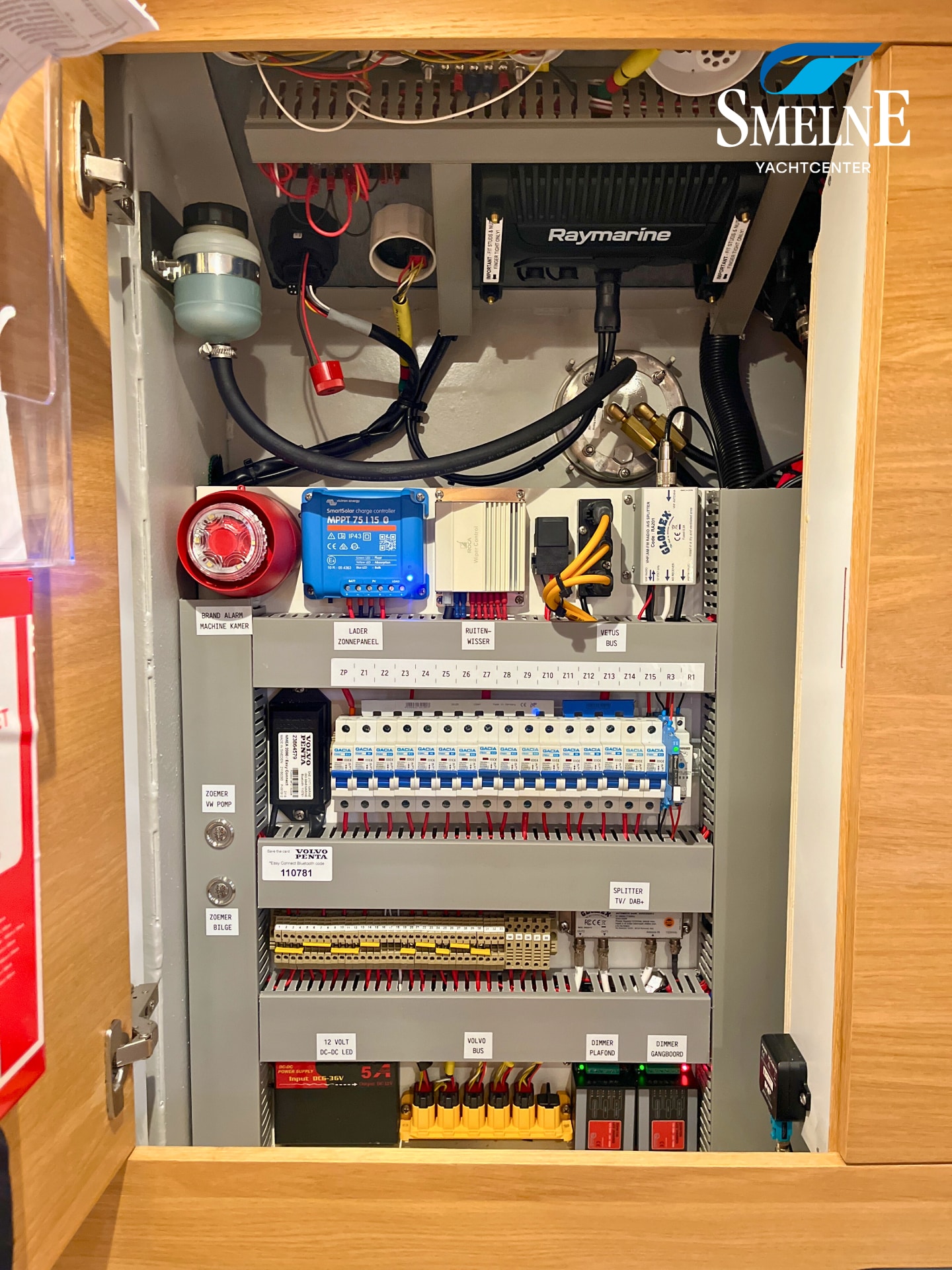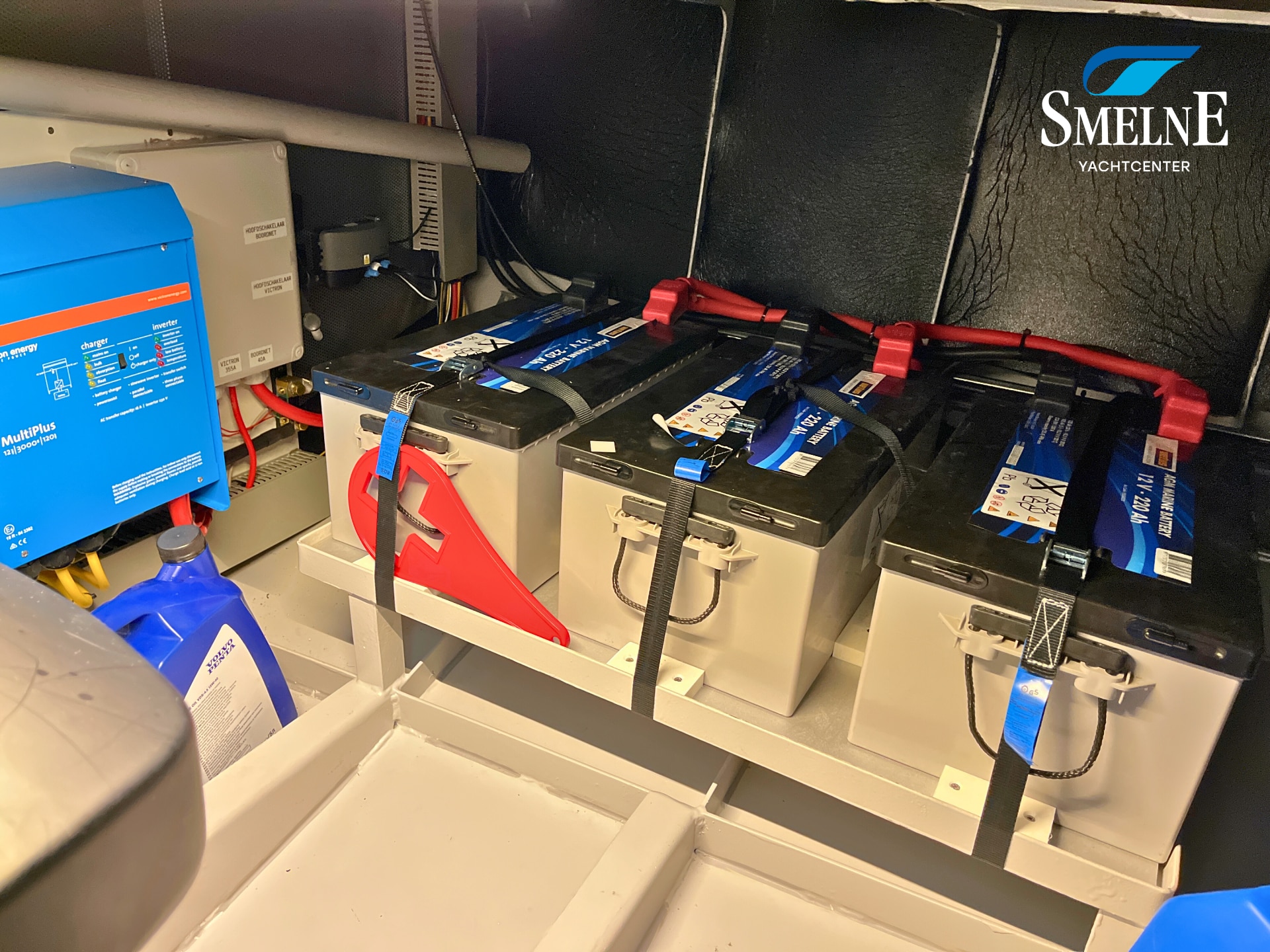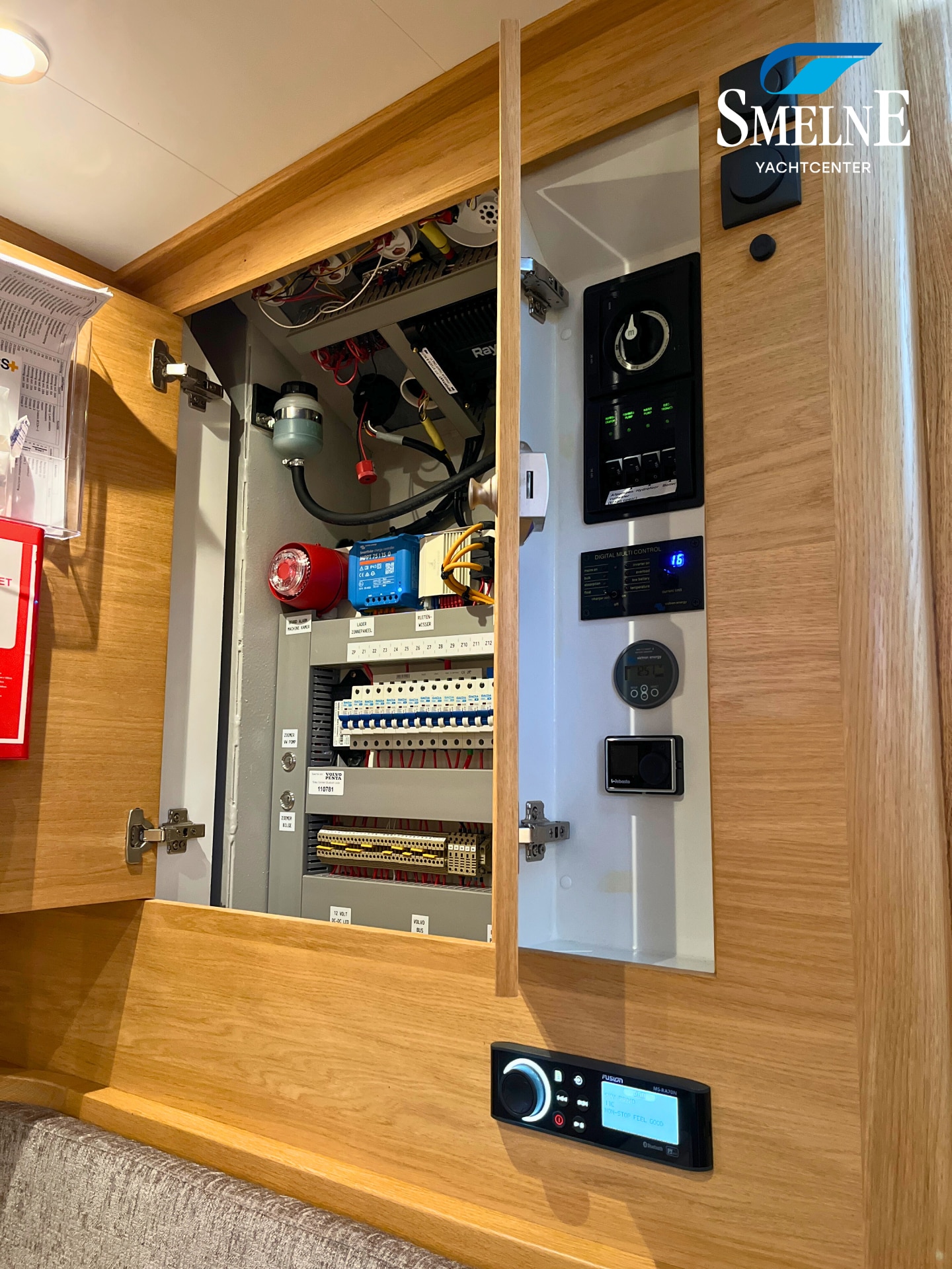 This Vedette is also very well equipped, with extras that make all the difference: more powerful motorization compared to standard, electronic engine control, proportionally controlled bow and stern thruster with Vetus double proportional control, engine data can be read and radio multimedia system can be operated via Axiom screen, wipers with interval function, heating outlet under windscreen, 176 Watt solar panel + 15 Amp Victron charge controller, Victron BMV-712 Smart battery monitor, Glomex Webboat 4G Lite EVO WiFi antenna, luxury canopy with zip-out section in front for ventilation and Easy-convertible system on rear section with zip-in insect screen, sunken cockpit bench for storing folding bicycles with double 230V connection, extra gas connection on bathing platform, double roof hatch in cabin roof with integrated insect screen and blackout, extra porthole in hull at dinette with insect screens and rain covers, integrated blinds in the cabin access door, USB & USB-C charging points at the steering position and throughout the interior, central vacuum system, and more!