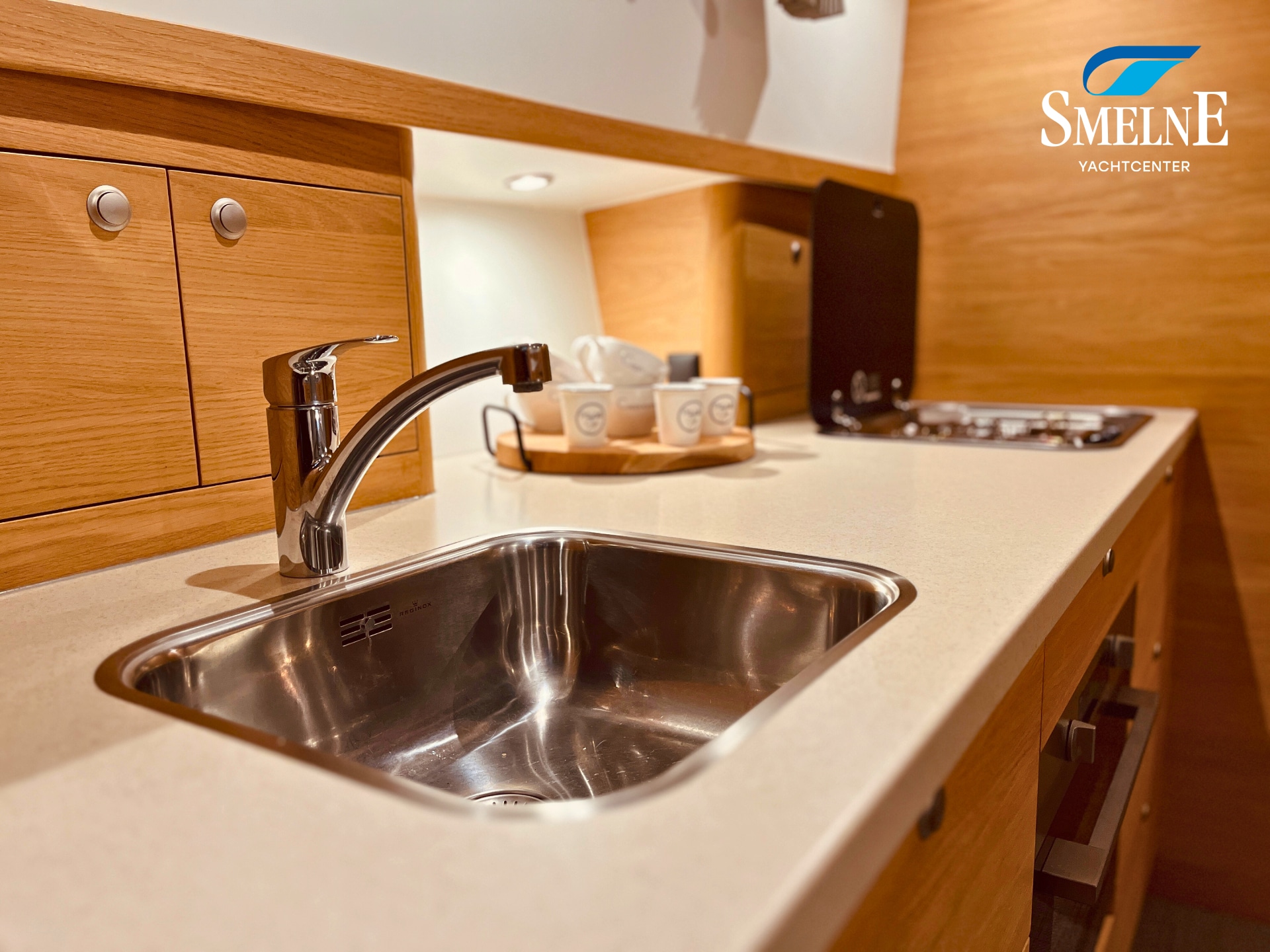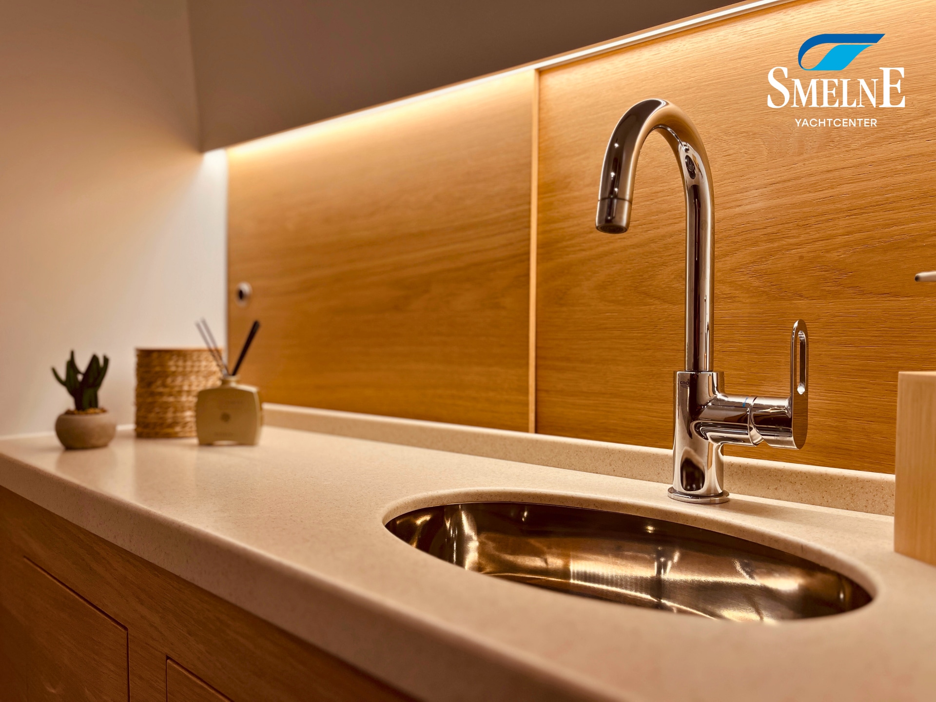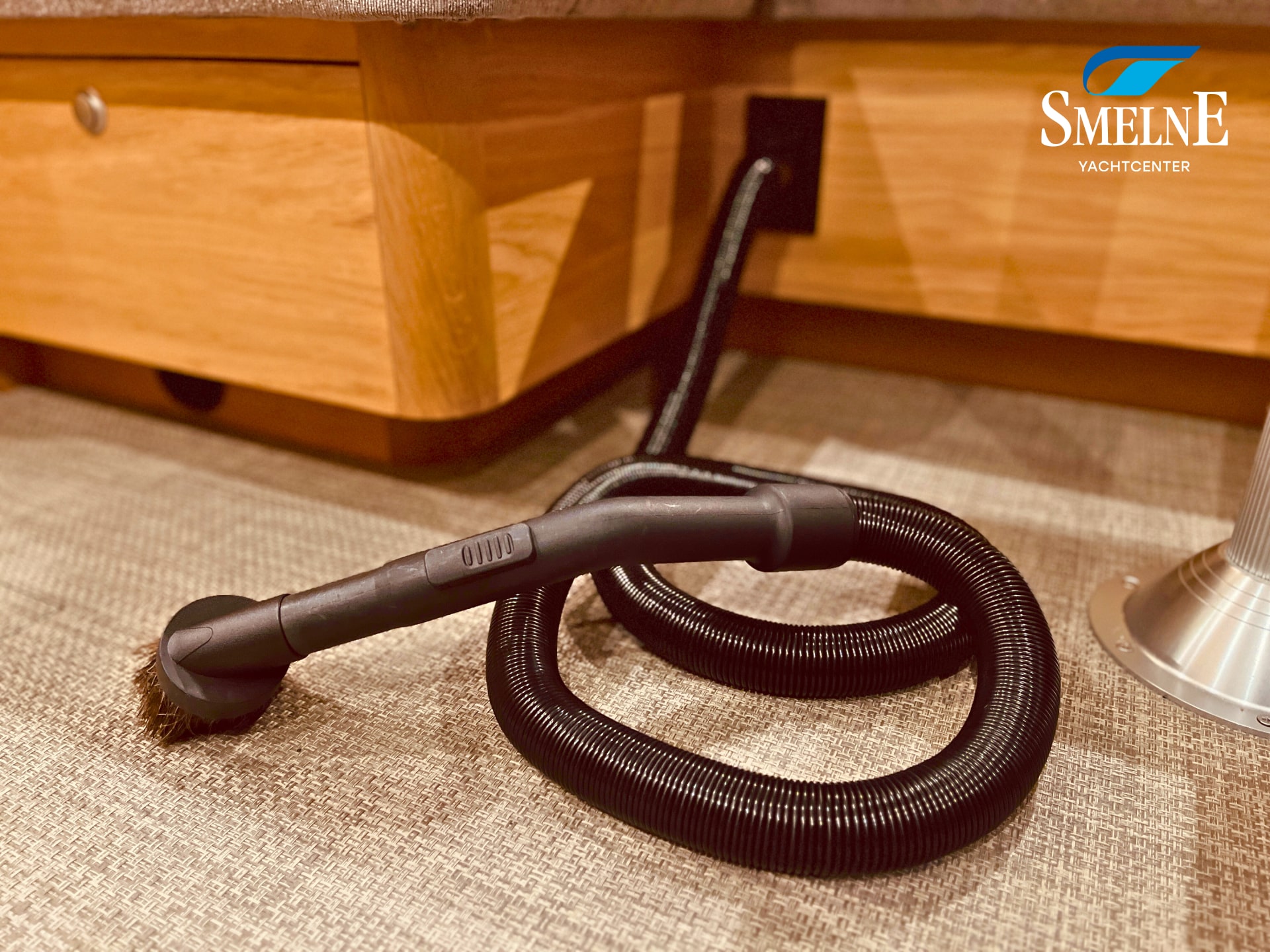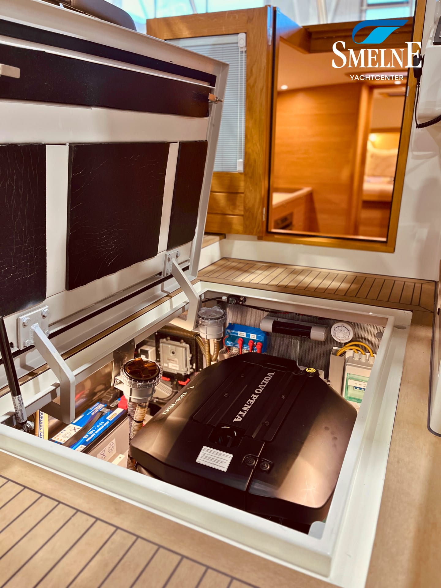 The cabin exudes tranquility and space, with a logical and inviting layout. Here you'll find a fully equipped galley, a spacious U-shaped dinette, and a sanitary room with an electric toilet and washbasin. The owner's cabin is located forward, with a freestanding double bed and an ensuite shower room. A wealth of storage space is provided throughout the interior, keeping everything neat and organized. In the evenings, it's wonderful to relax with a book or a drink in the soft, dimmable lighting of the cabin. The modern interior and open-plan layout provide a comfort that almost feels like home, while the characteristic feel of a motor yacht remains palpable.