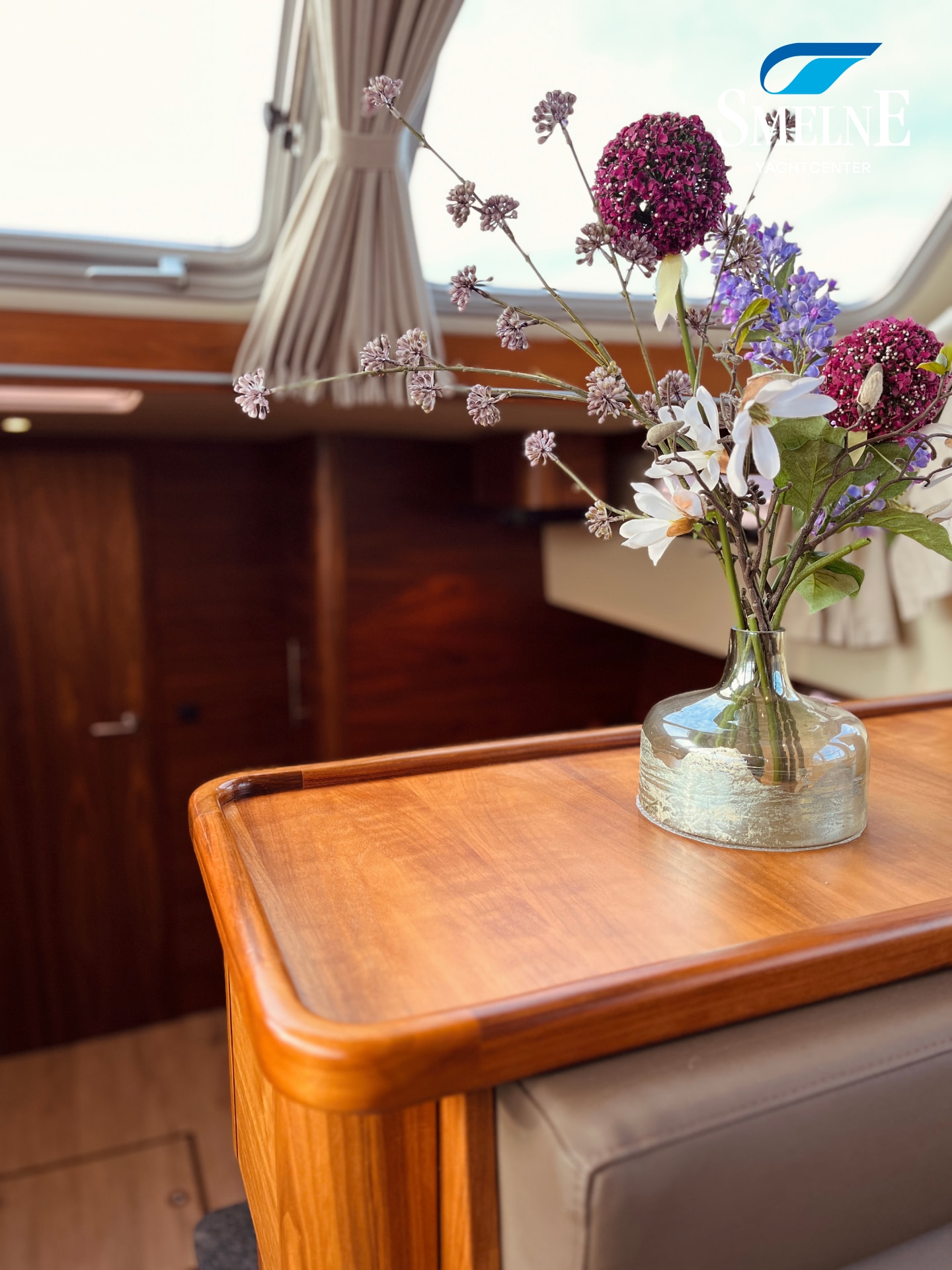 In addition to the extensive standard equipment, this ABIM Classic 134 Superior features numerous extras and high-end options that make sailing even more enjoyable. These include the RotorSwing stabilization system for optimal comfort in rough water, electronic engine control, ultra-quiet bow and stern thrusters, and Volvo Penta EVC for comprehensive engine data, including depth, speed, rudder angle, and fuel consumption. The Nottrot N-line 15,6-inch multifunction display, combined with Yachtcontrol navigation and the Airmar weather station, provides a clear overview of your trip.