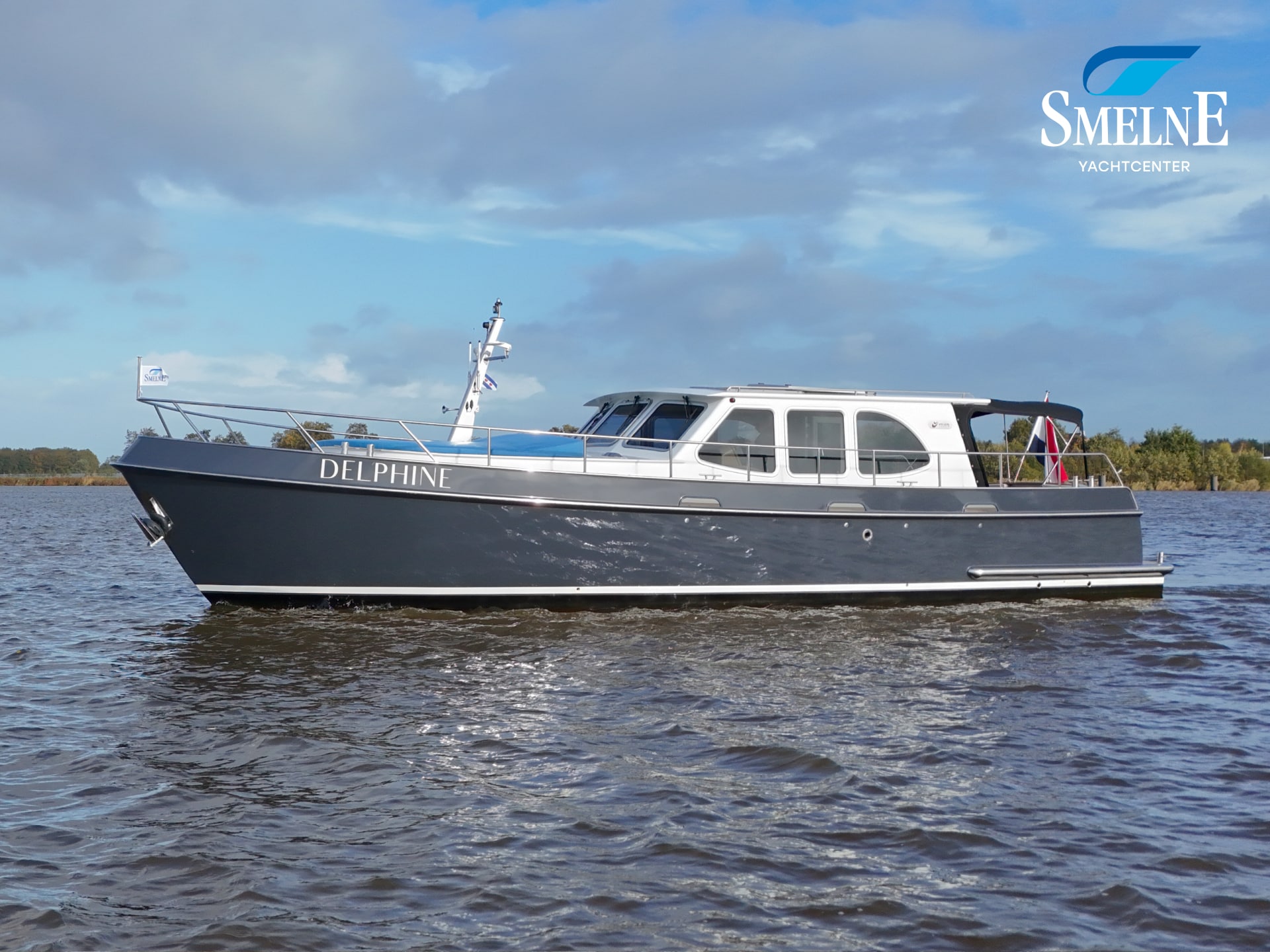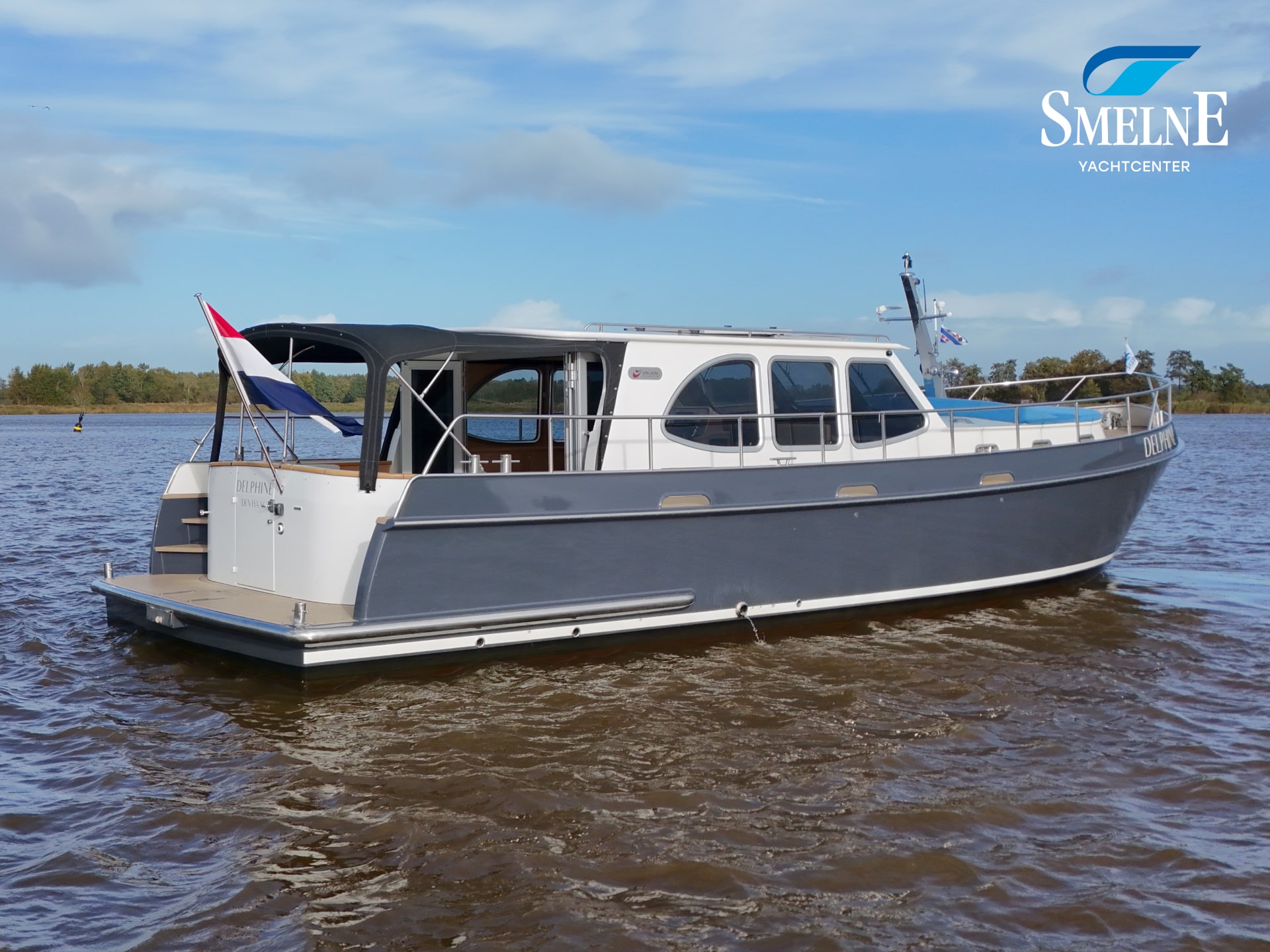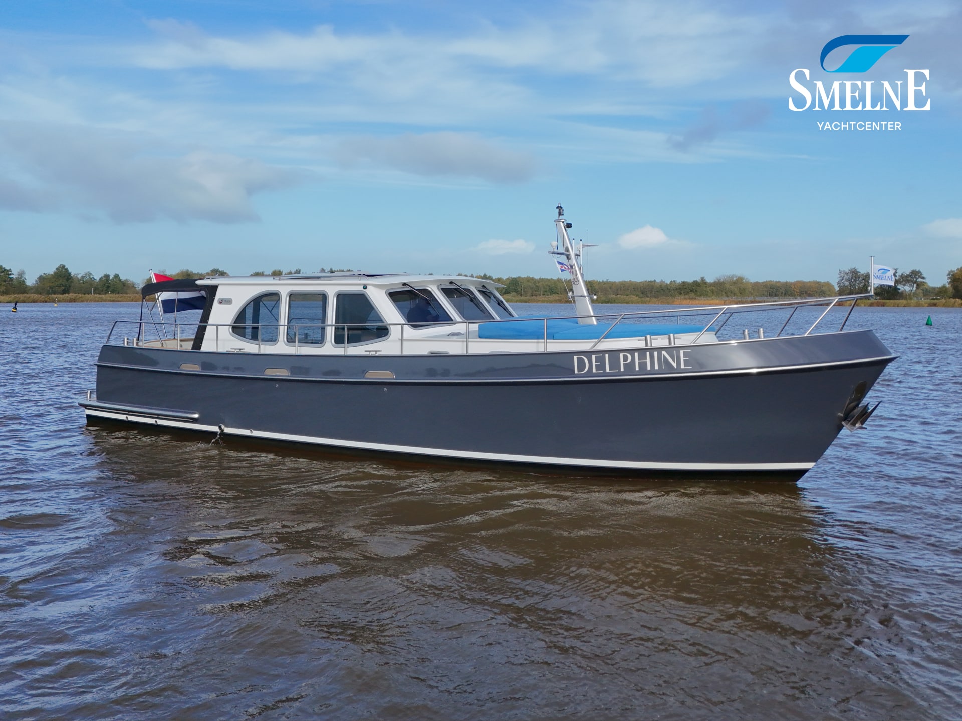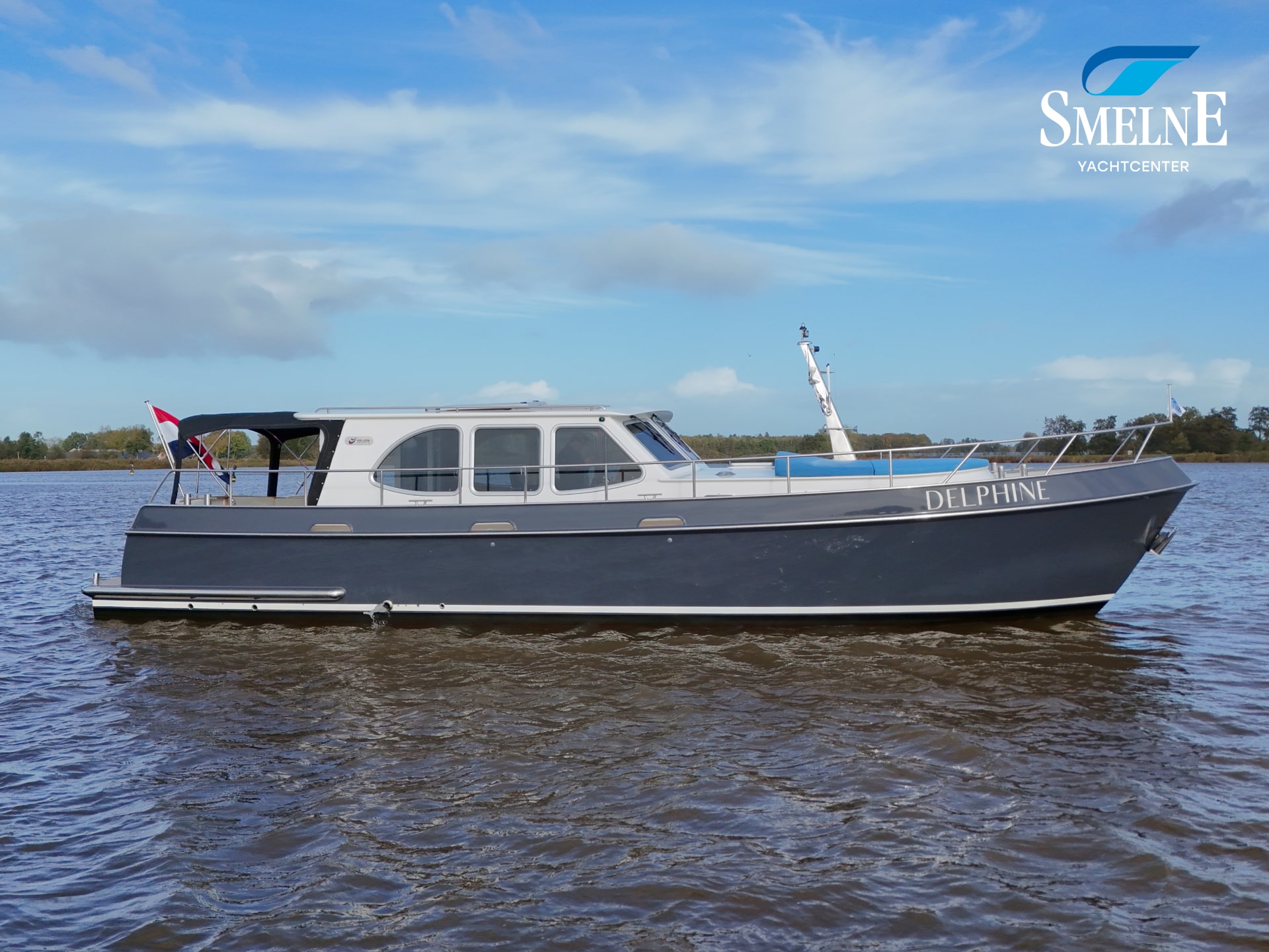 A well-kept motor yacht, ready for many new voyages on inland waterways and coastal areas.