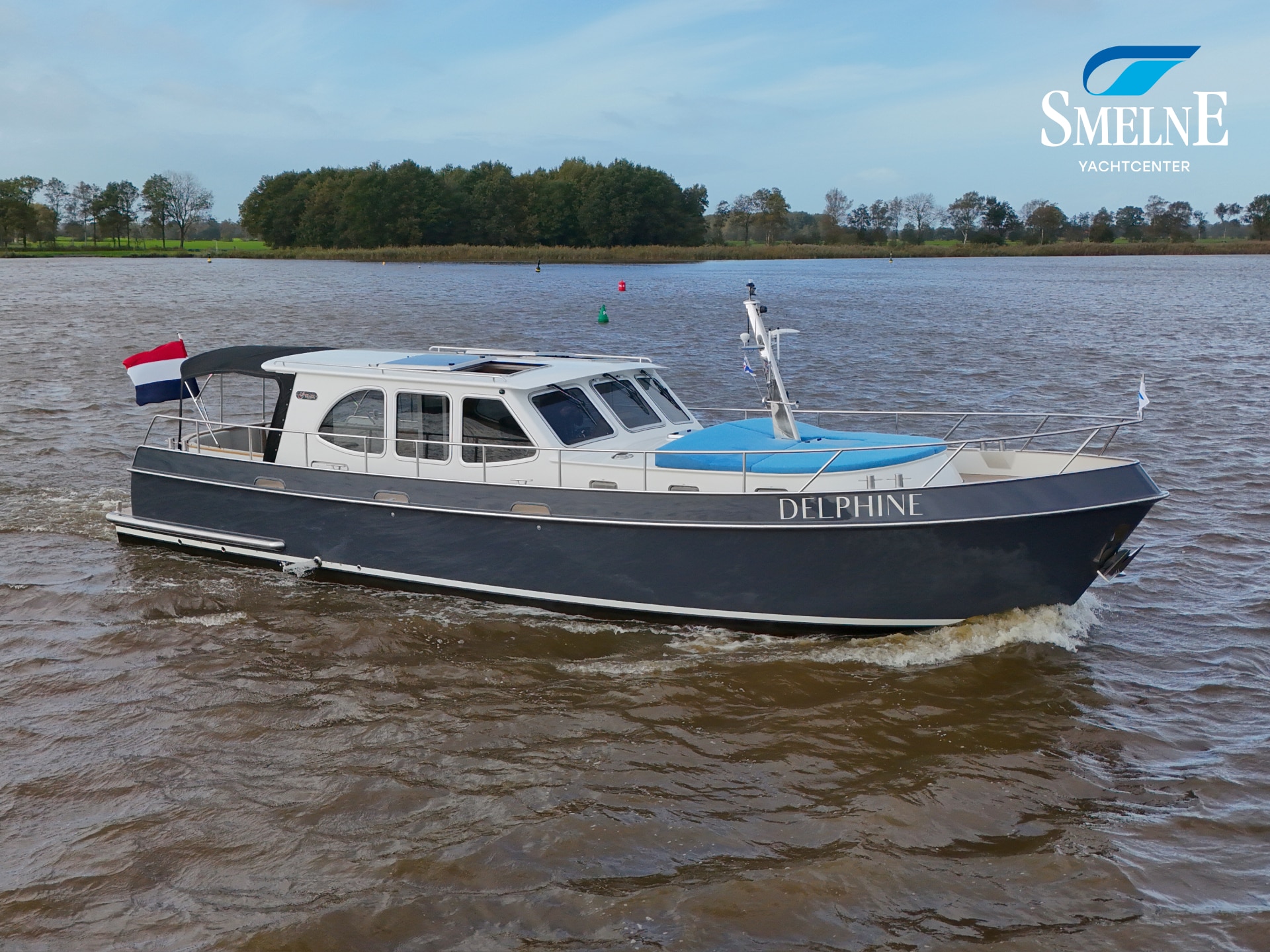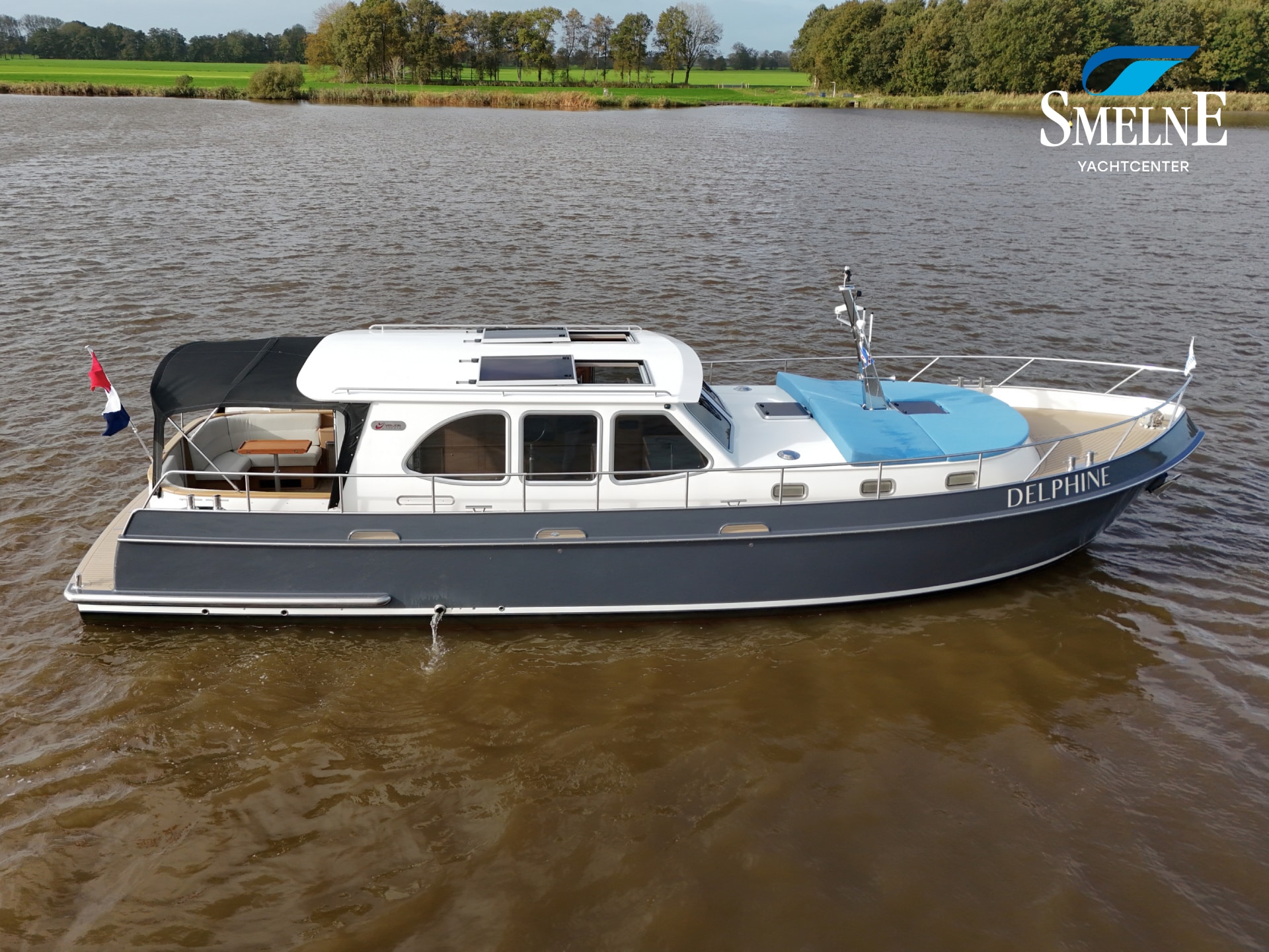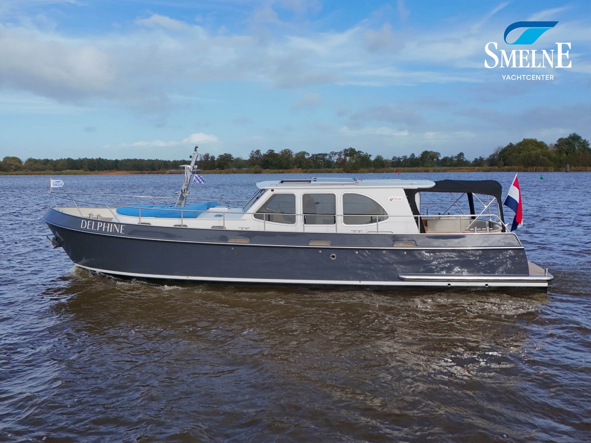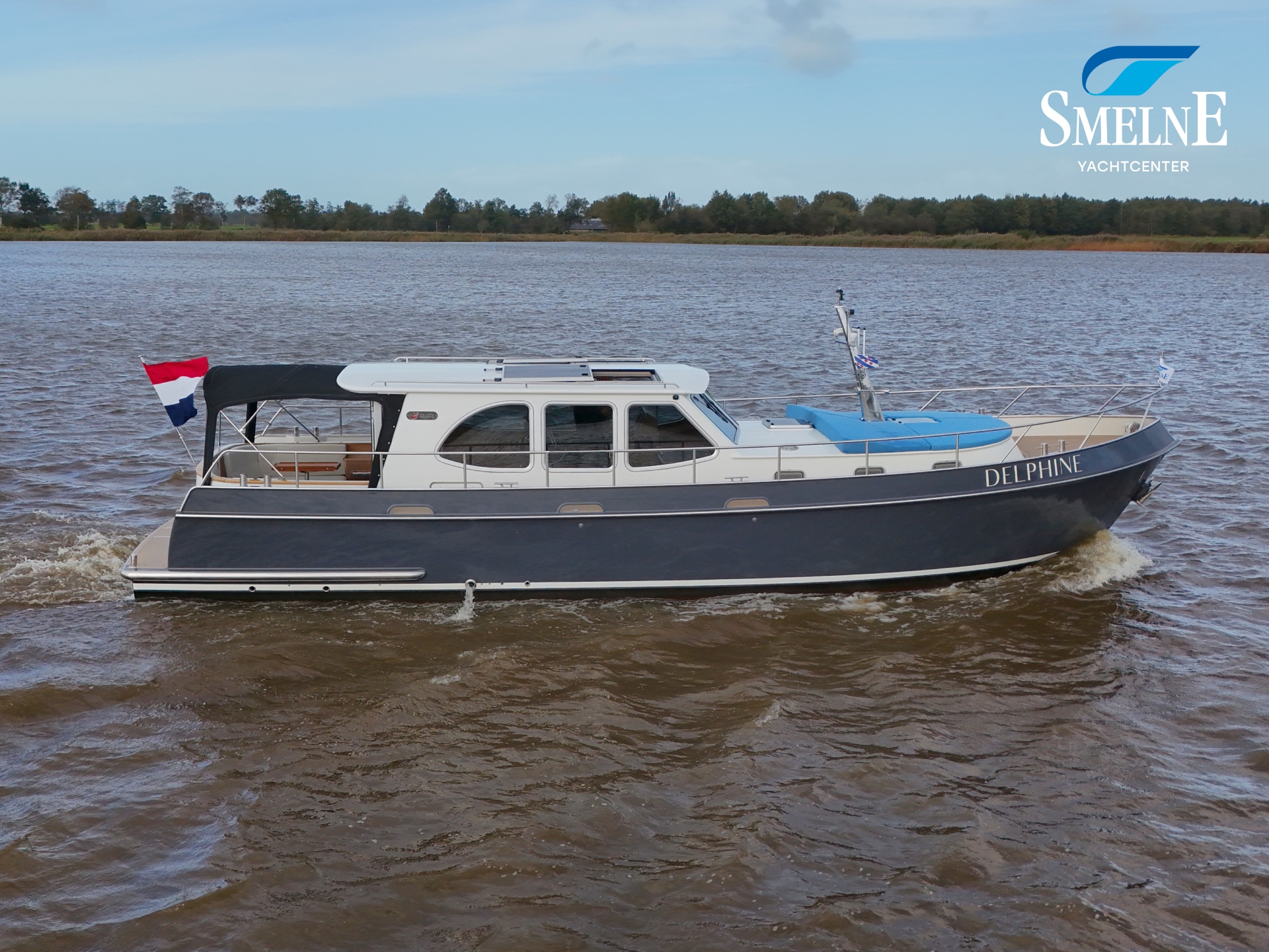 A well-kept motor yacht, ready for many new voyages on inland waterways and coastal areas.