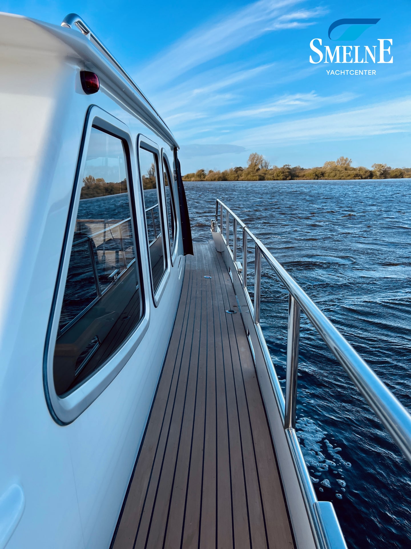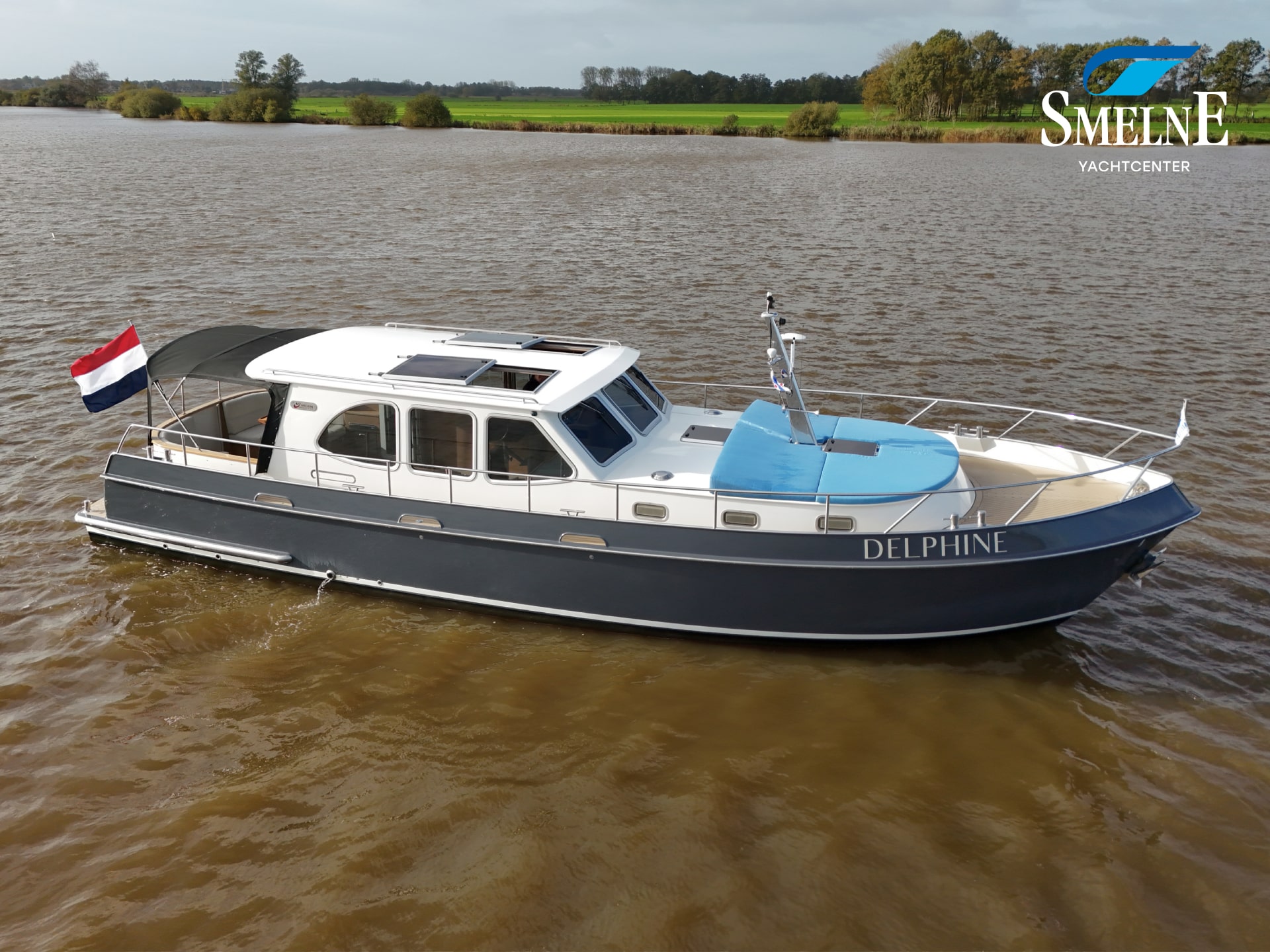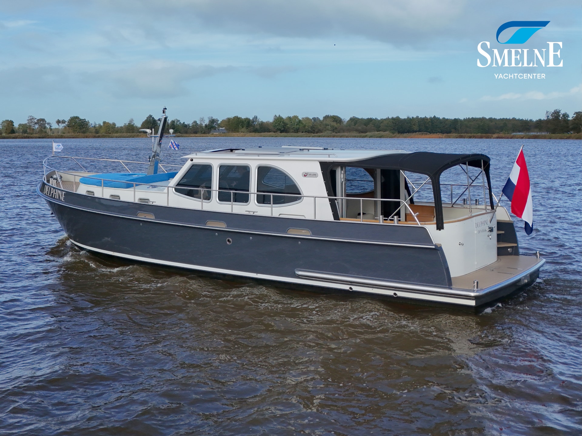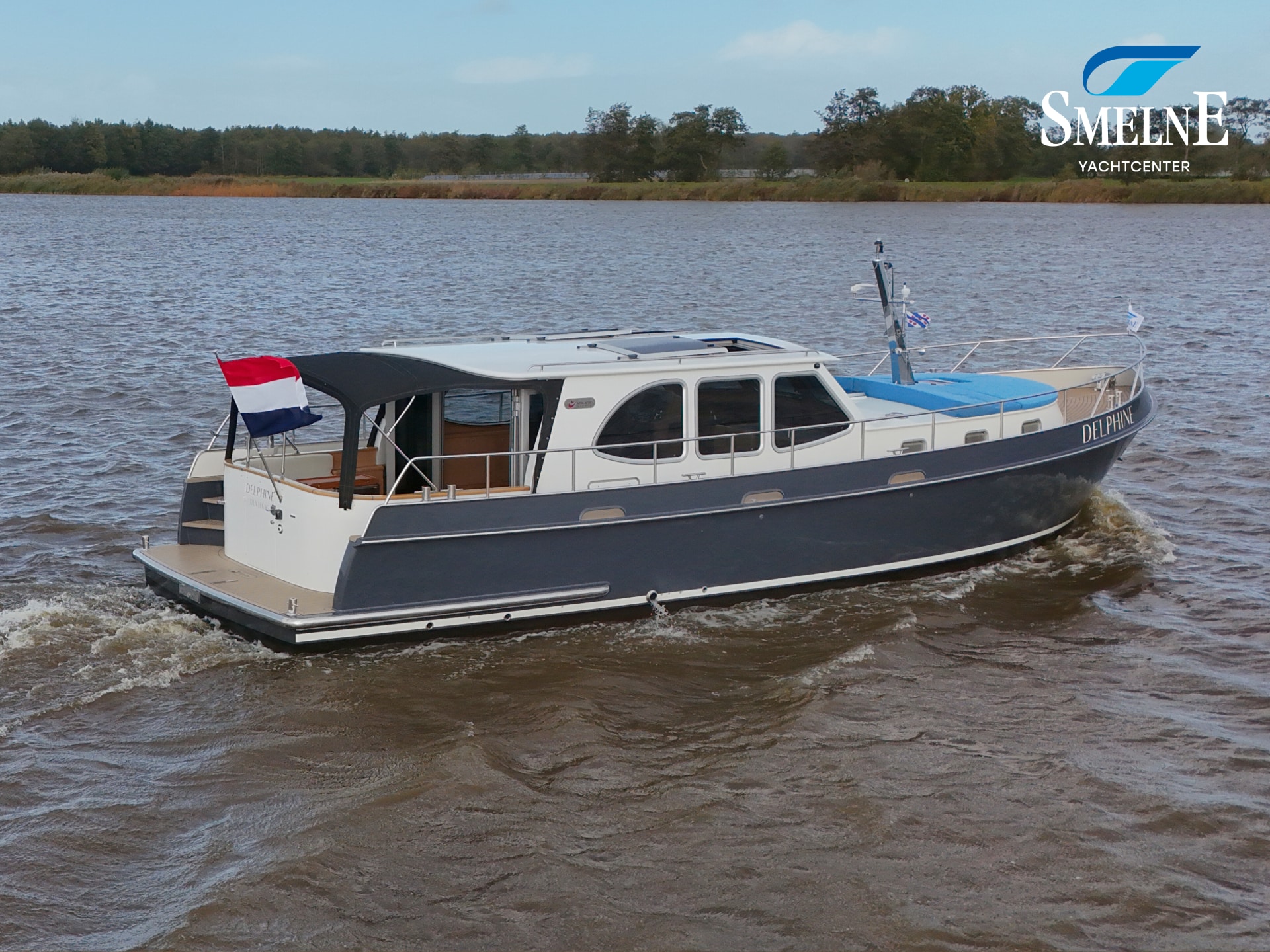 A well-kept motor yacht, ready for many new voyages on inland waterways and coastal areas.