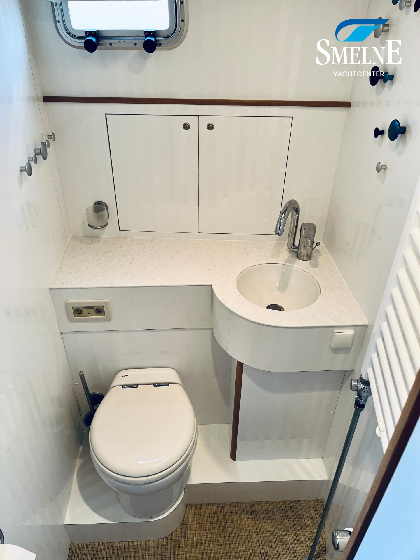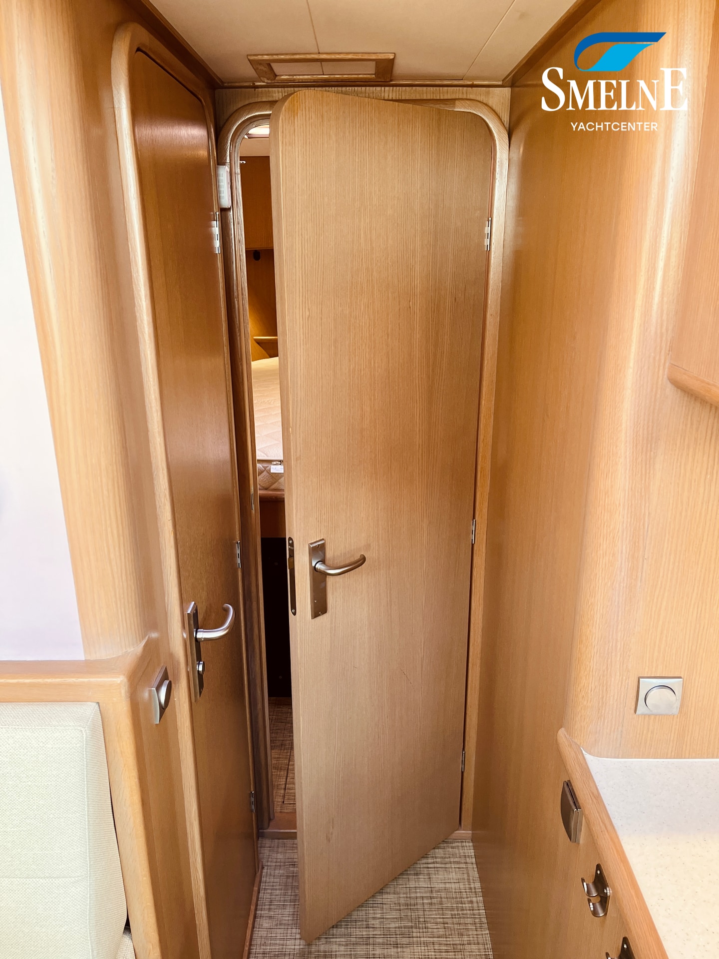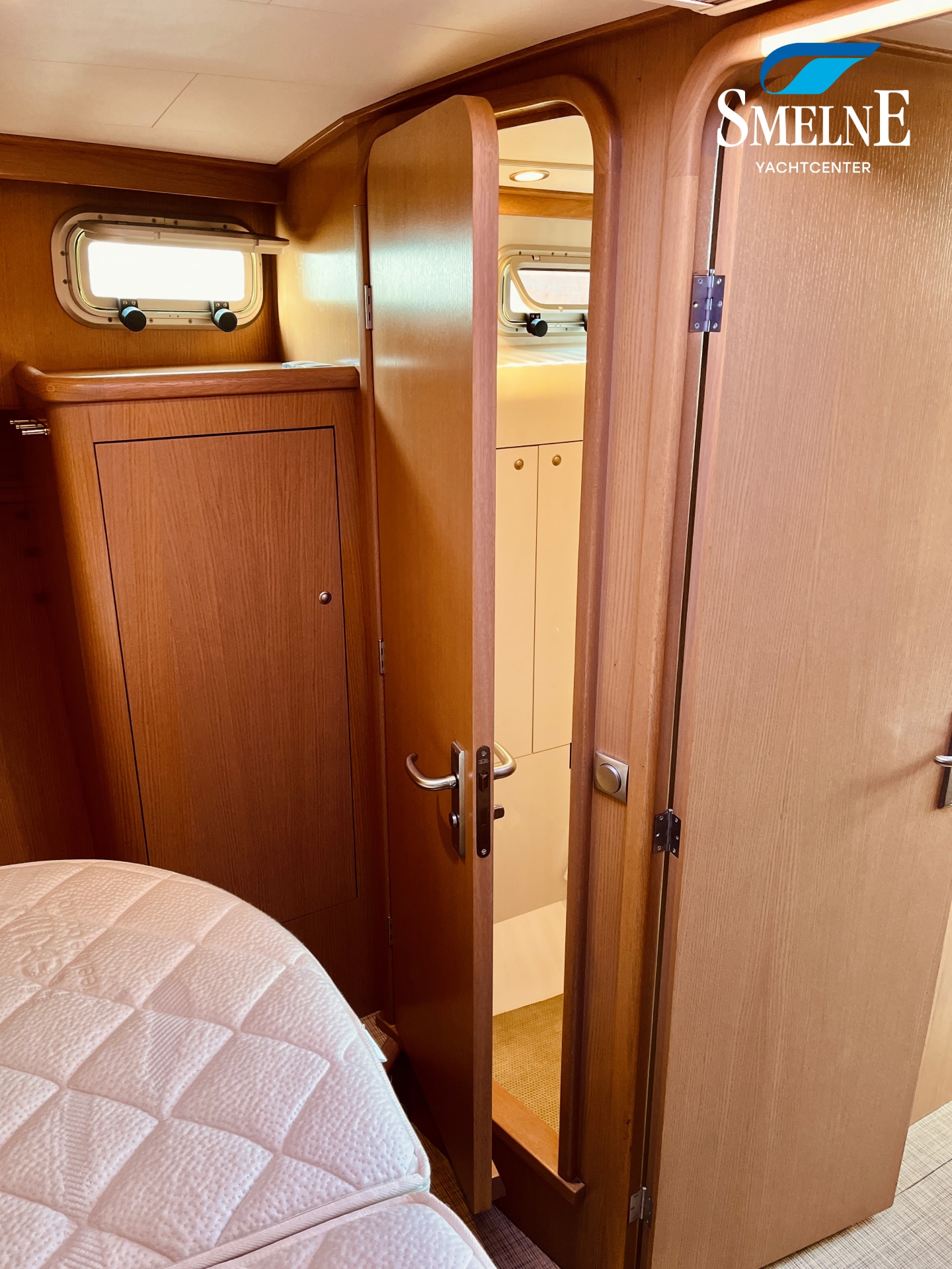 The galley is located forward, equipped with a practical kitchen and a cozy dinette, which can easily be converted into an additional sleeping place. From the galley, there is access to a sanitary room with an electric toilet. The forward cabin houses the spacious owner's cabin with a comfortable freestanding double bed, ample storage, and an ensuite shower room, ensuring optimal privacy and comfort.
