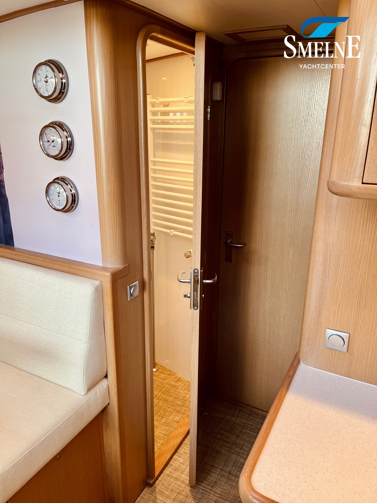 The technical installation is complete and of solid quality, as we expect from Vri-Jon. Bow and stern thrusters, a generator, central heating, thermic-line windows, and foam insulation ensure a comfortable stay on board, while modern navigation equipment facilitates cruising.