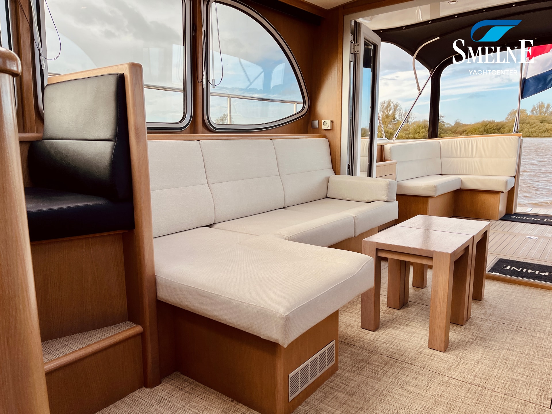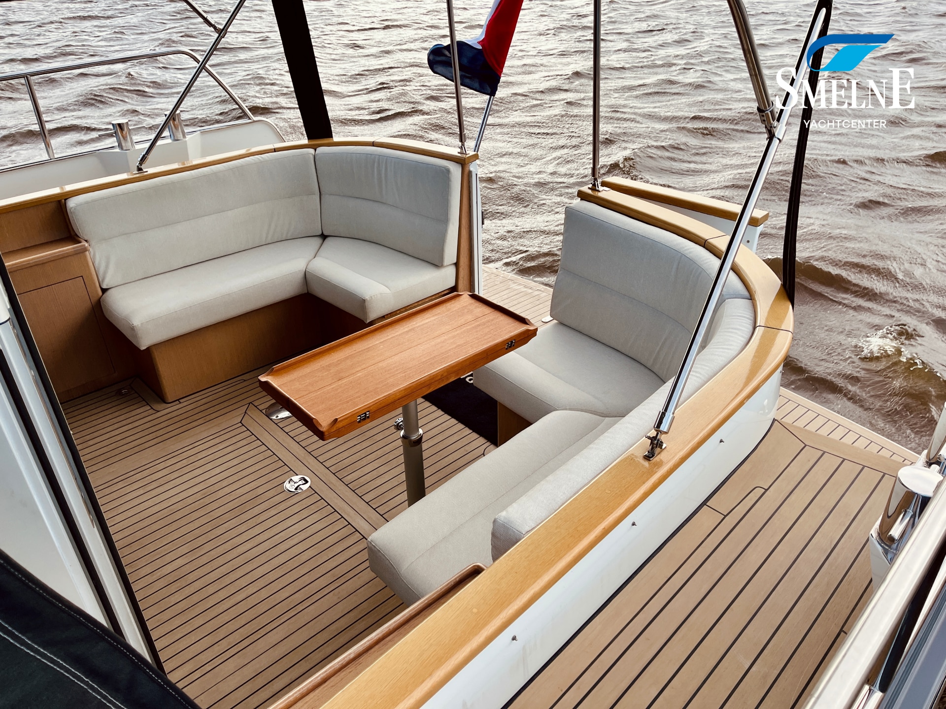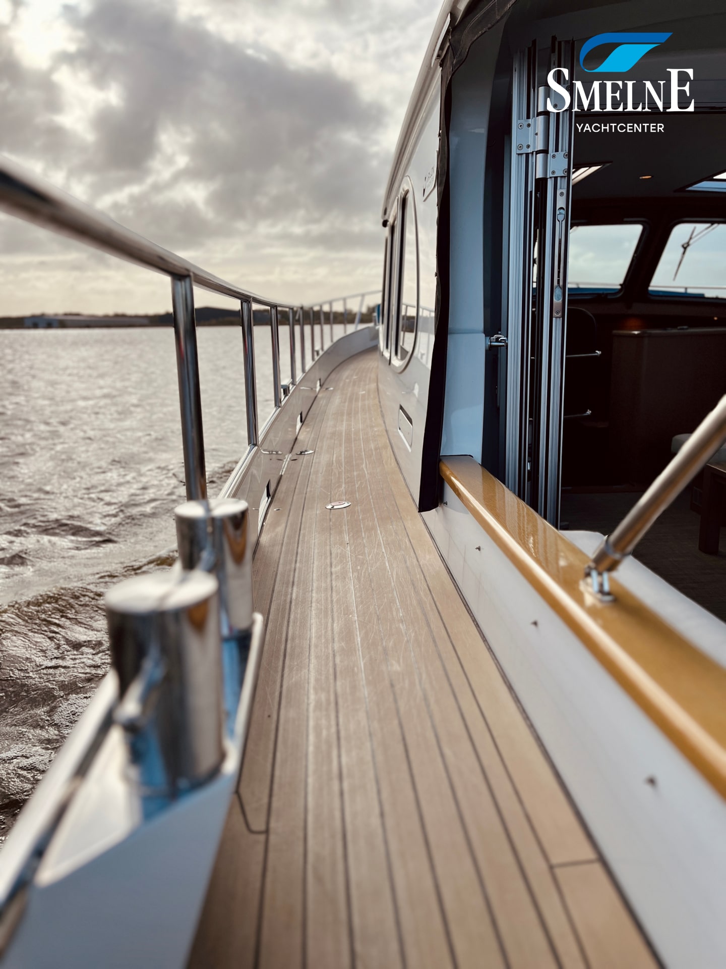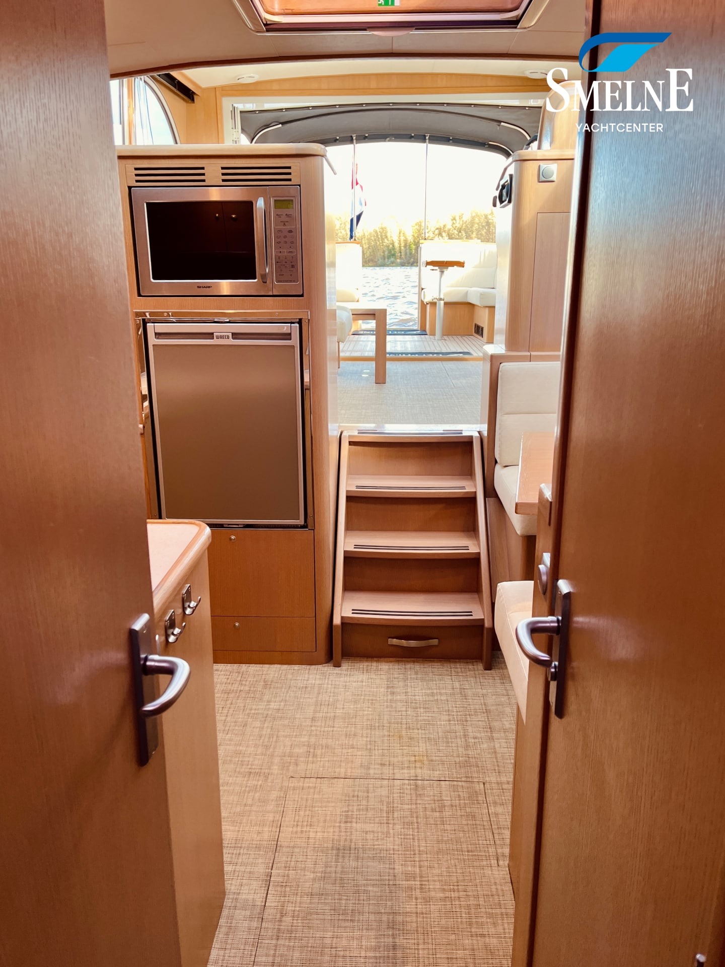 Thanks to the wide gangways with secure stainless steel railings all around, the boat is easily accessible. From the bathing platform, you can reach the gangways via the integrated staircases, or you can access the open cockpit directly through the transom door. This makes boarding and disembarking safe and comfortable.