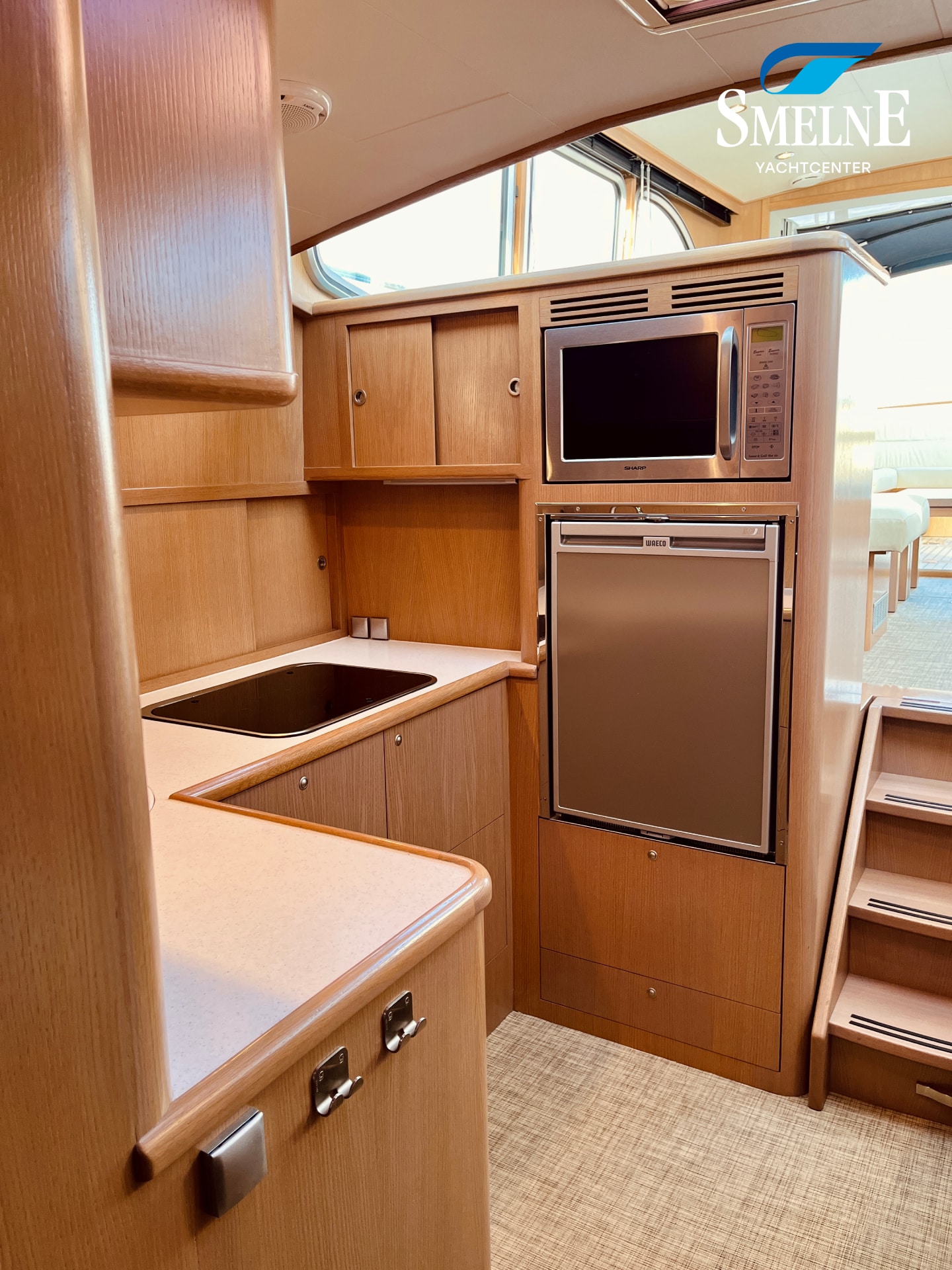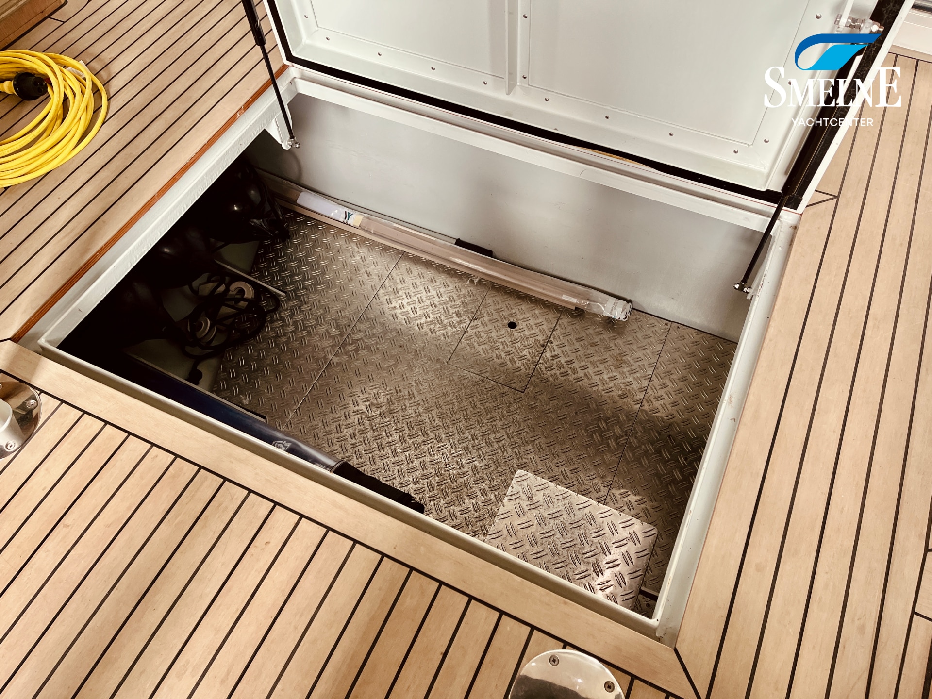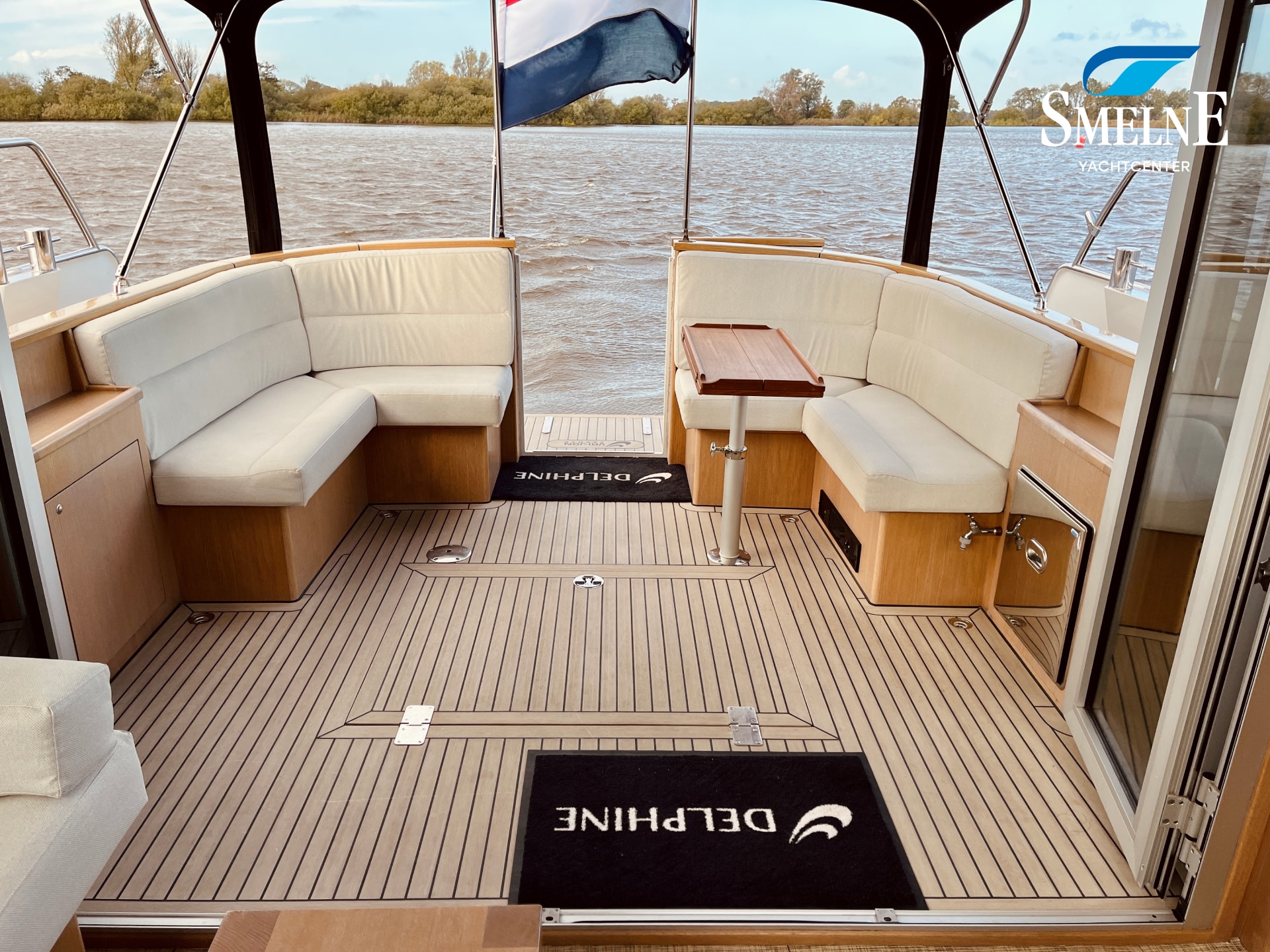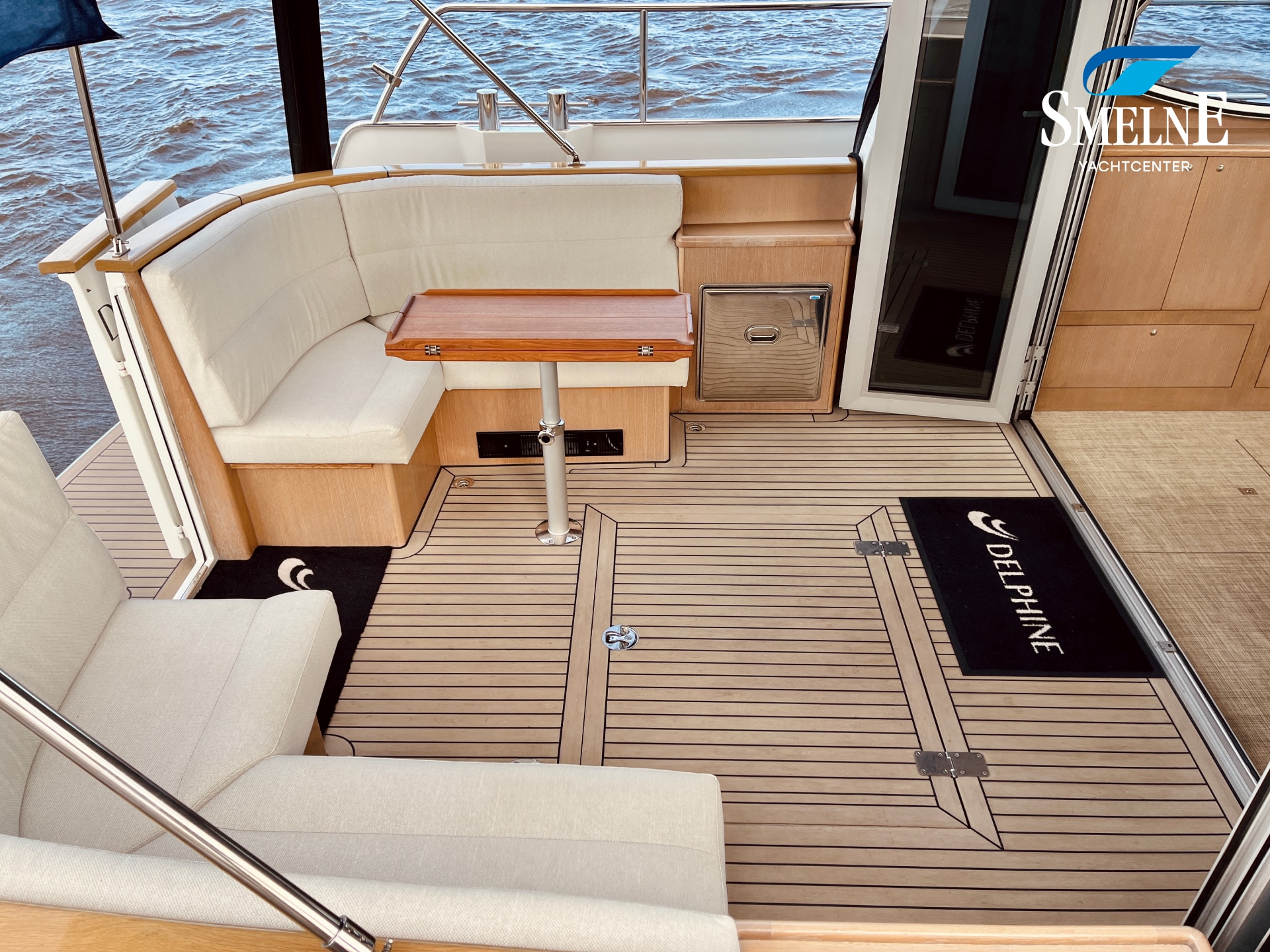 Thanks to the wide gangways with secure stainless steel railings all around, the boat is easily accessible. From the bathing platform, you can reach the gangways via the integrated staircases, or you can access the open cockpit directly through the transom door. This makes boarding and disembarking safe and comfortable.